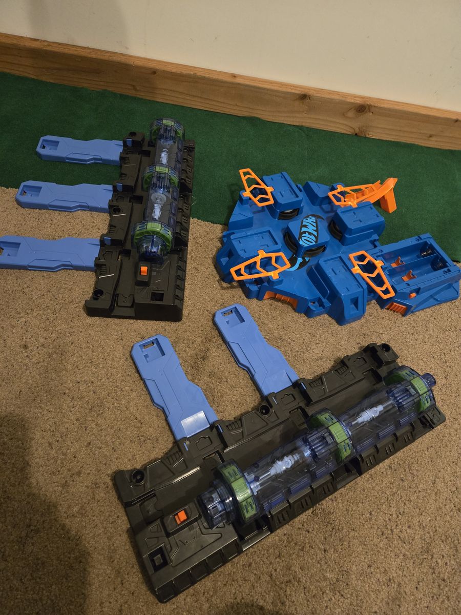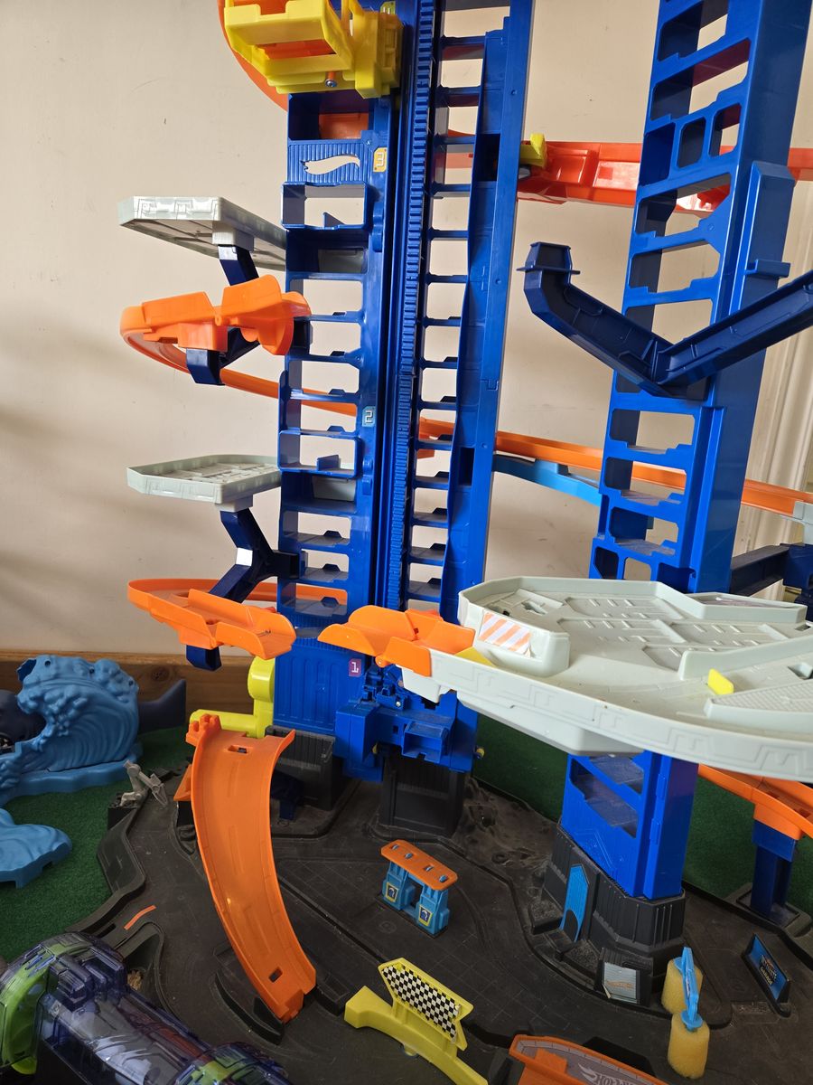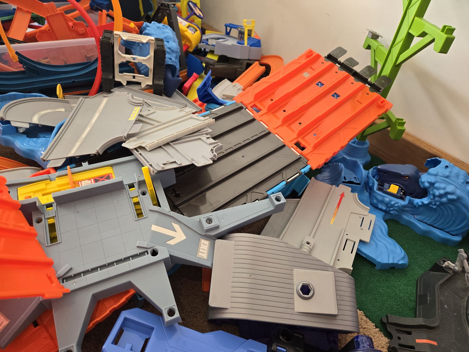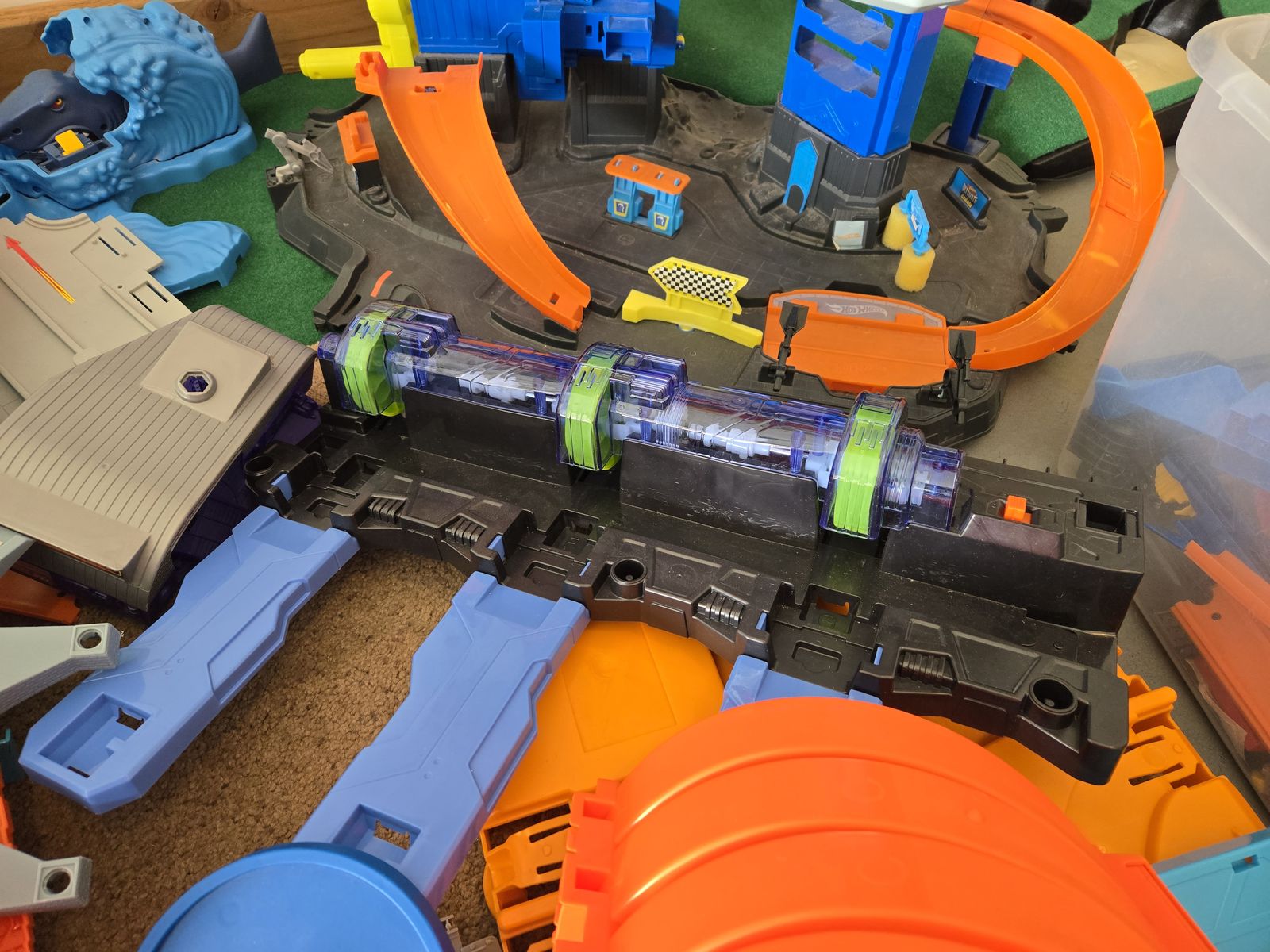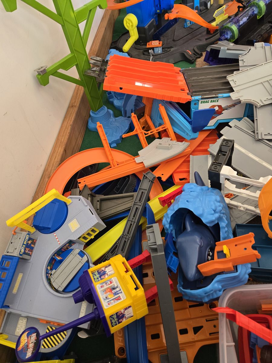 Make an offer. All reasonable offers will be entertained. So many great sets and tougher to find track pieces. A handful of vintage sets as well as the Ultimate Garage, the Stunt Playset, and all the cars shown. The 3 electronic pieces in the last picture weren't shown in the initial picture, but they are included with batteries and are working well. Please see all pictures for exactly what you'll be receiving. I did my best to remove any broken pieces...what you see is pretty clean overall. The 5 totes are included. Cash only.
