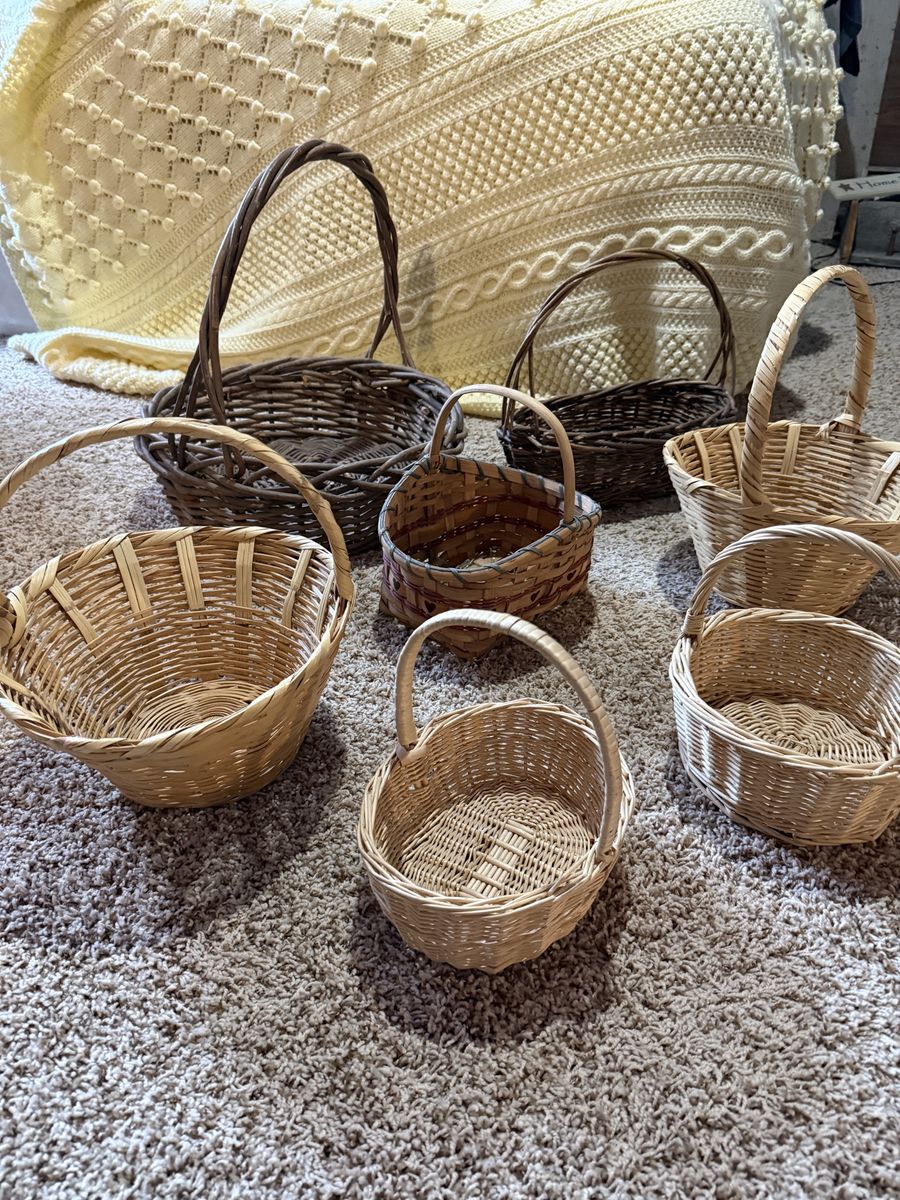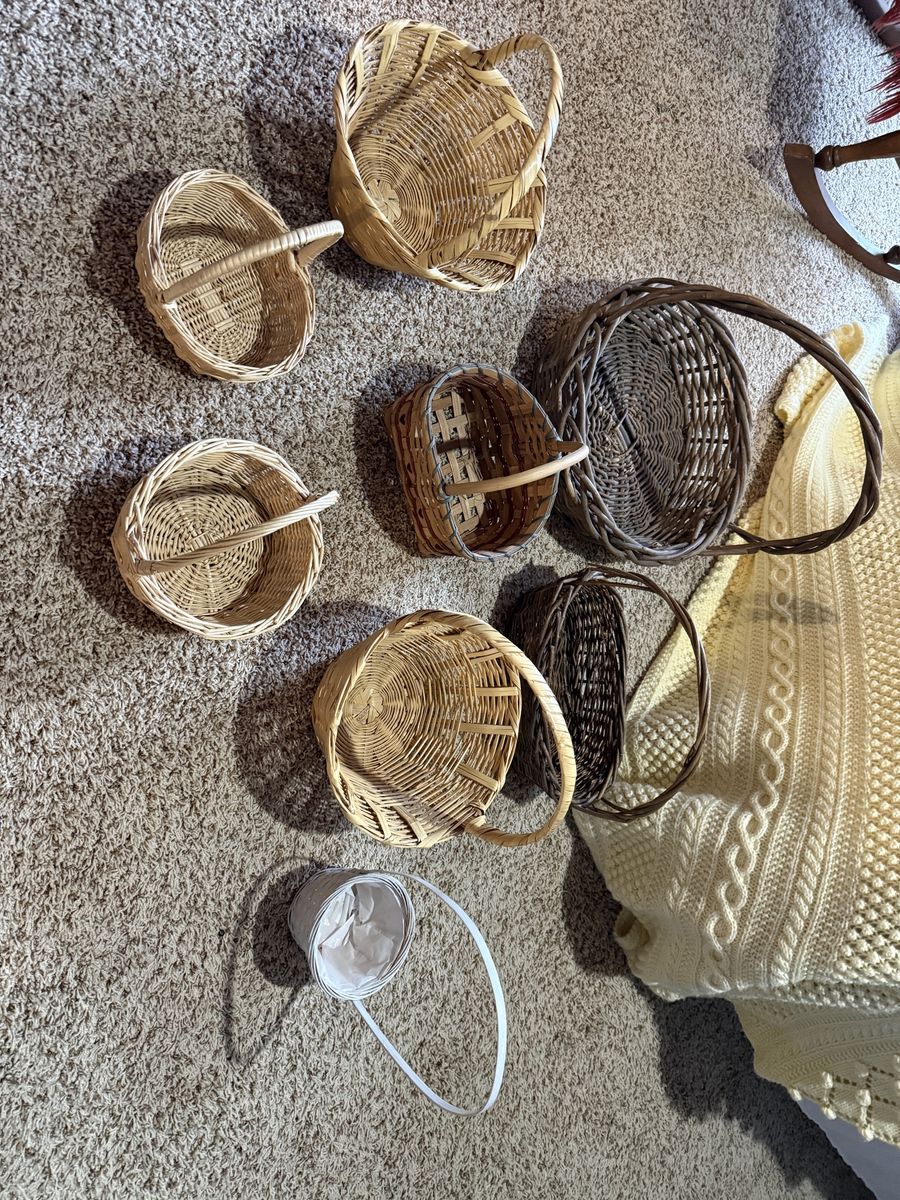 Variety of baskets, nice solid whicker baskets. $40 for set.