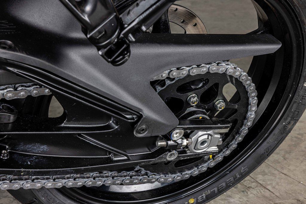 The design features a 2-piece construction composed of a steel trellis main frame with a pressure die-cast aluminum subframe. The rear shock absorber is mounted off-center to allow for the large airbox which allows for the lower seat height and, at the same time, adding to the DUKE's aggressive stance. Not only designed for looks, the primary objective of the frame design is to enhance vehicle dynamics by augmenting torsional rigidity, nimble agility, and enhanced feedback from the chassis.