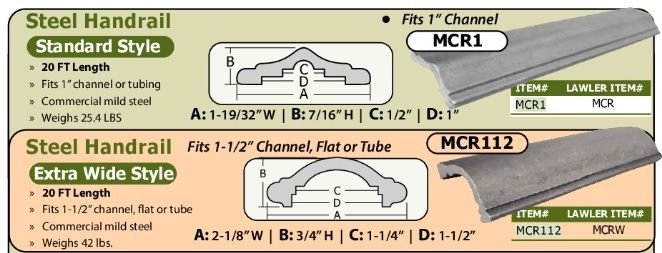 Steel Molded Handrail — 1-19/32" × 20' — $39.95 Each