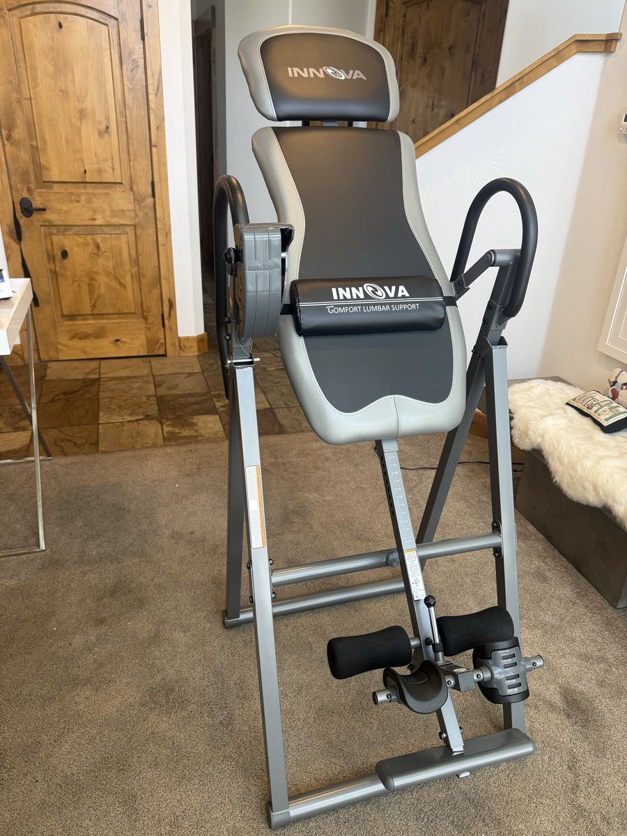The last item pictured is an inversion table for back stretching. Offering for free with bike if buyer would like it for their workout area (not required to take it). It works great. We’re just moving and won’t have space for these items any longer.