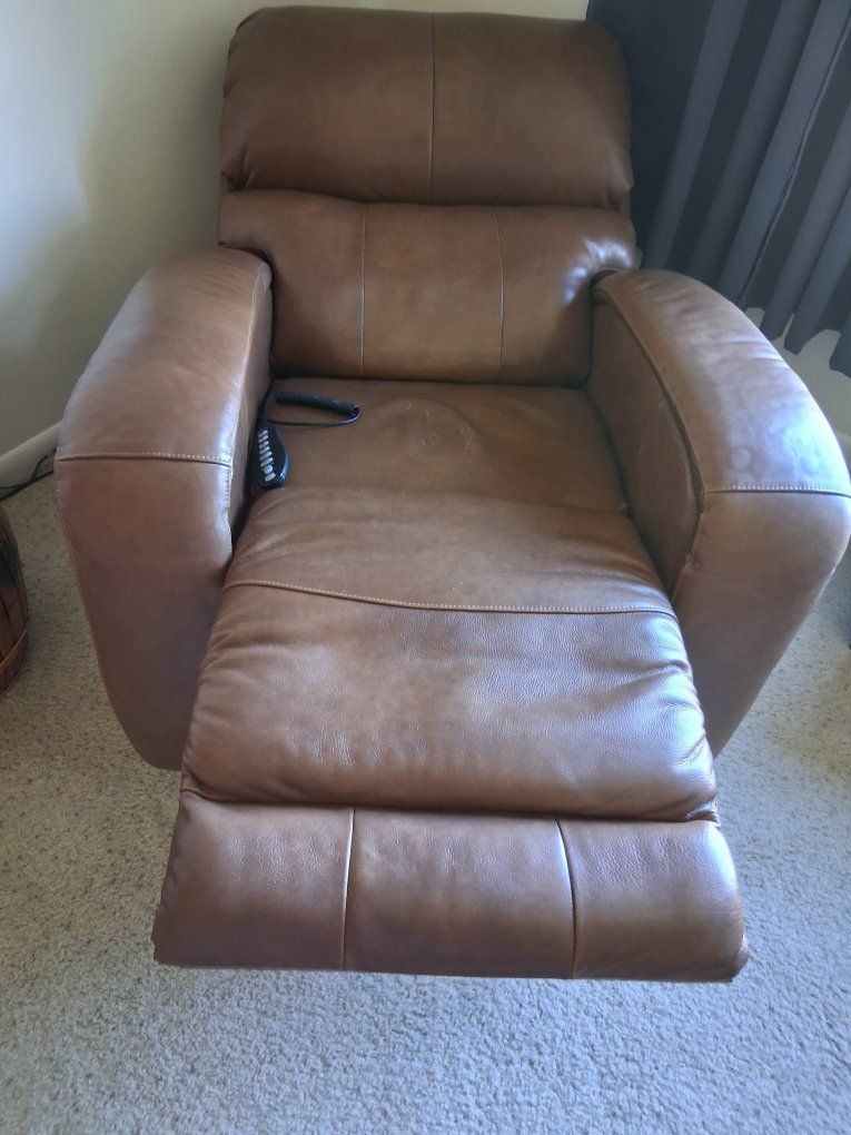 Recliner Power Leather. has massage, heat,lumbar support adjustable head rest.