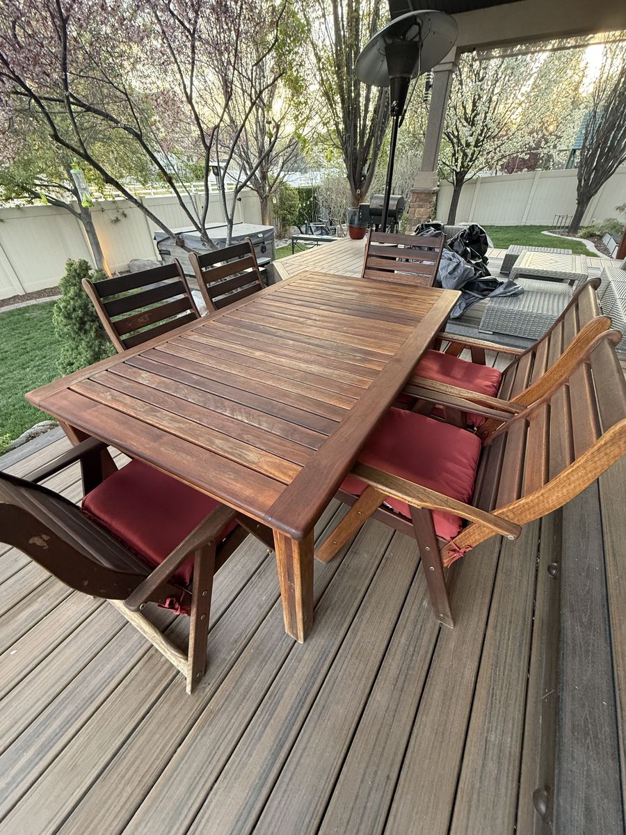 VenmoSolid wood patio funiture set - table and 6 chairs for sale. $400 o.b.c.o.