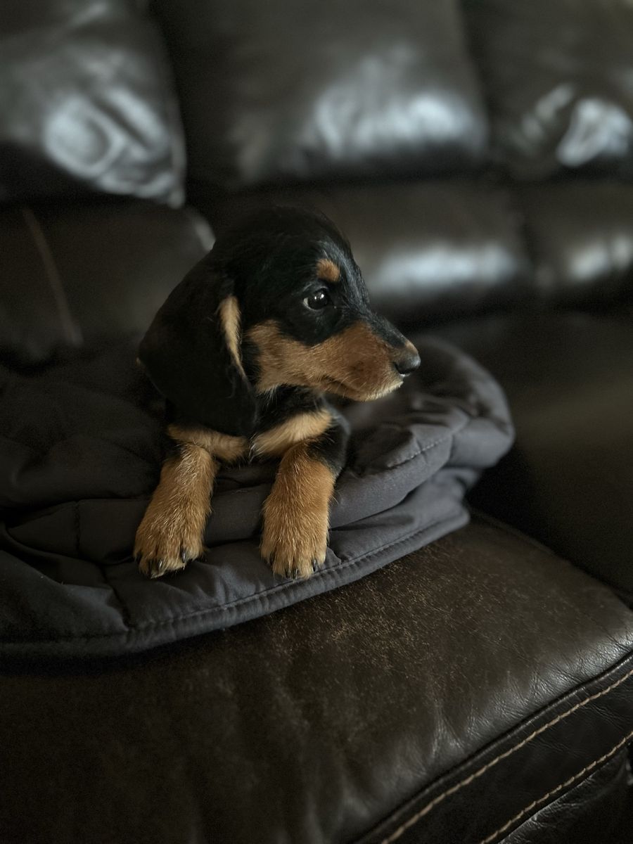 ApplePayHe is 9/10 weeks old, he is purebred but not papered. He comes with food, and a small kennel that he will fit when he’s grown. He has had his eight week shots, he’s full of personality. We are working on potty training and he is doing well but he also uses puppy pads in times of emergency. Reach out with any questions thank you!