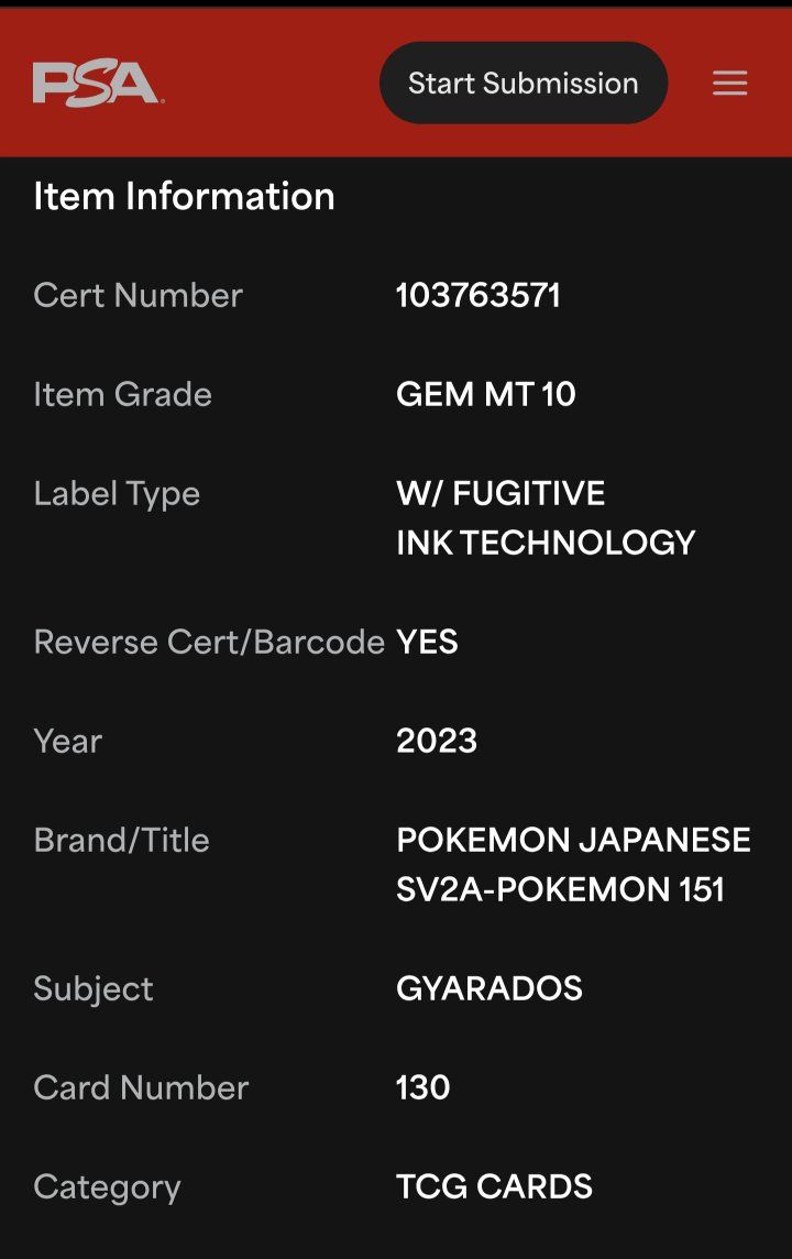 VenmoPSA 10 GEM MINT Gyarados #130 with the rare Master Ball Reverse Holo pattern from the Japanese Pokémon 151 (SV2a) set. This is a LOW POP card, extremely difficult to pull and even harder to grade a 10 due to the delicate Master Ball foil.