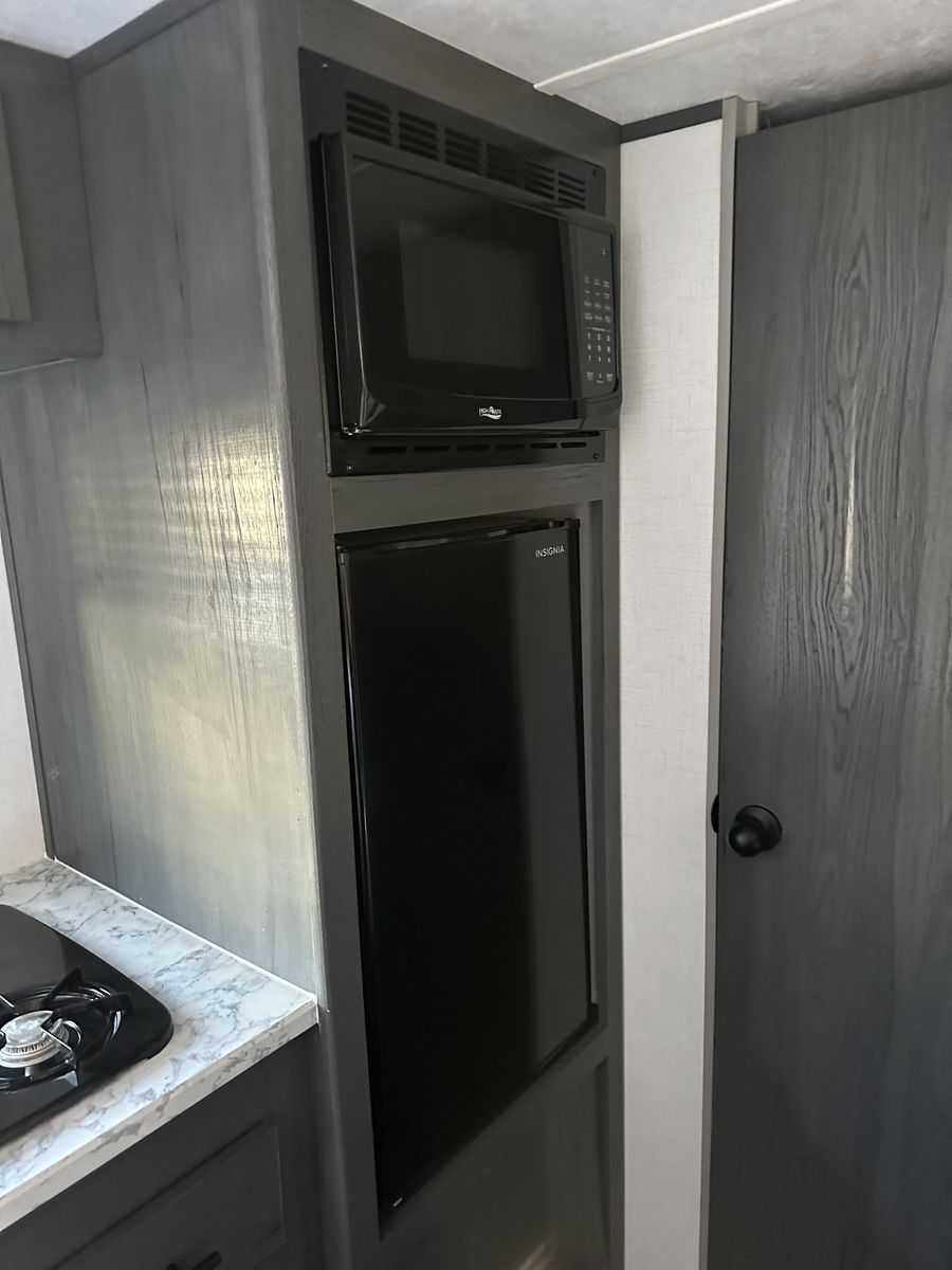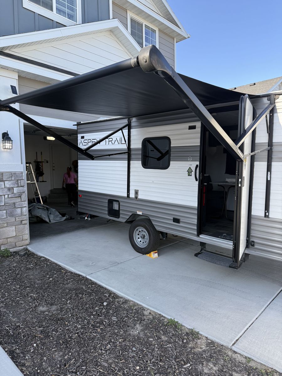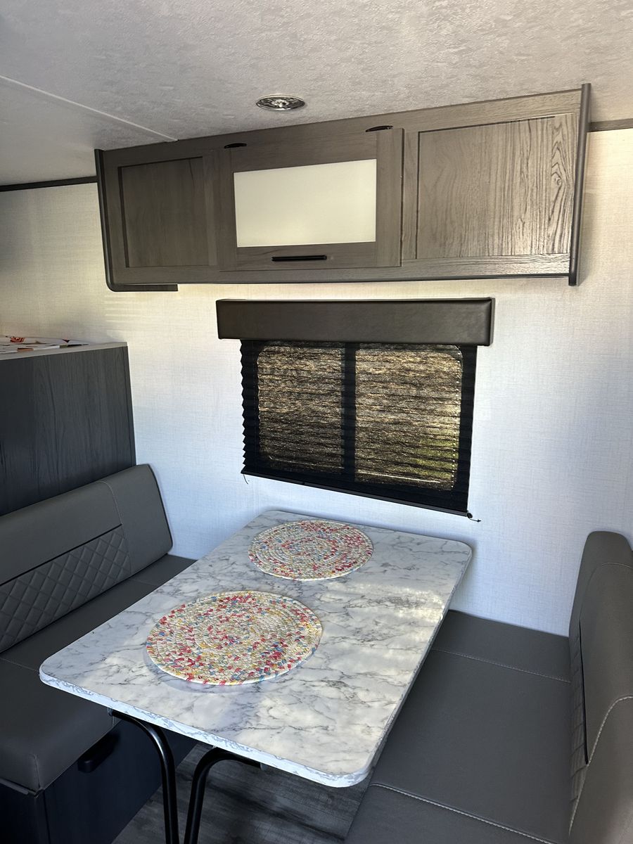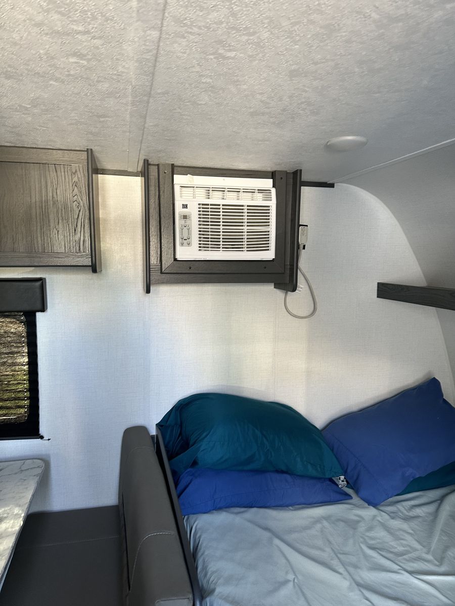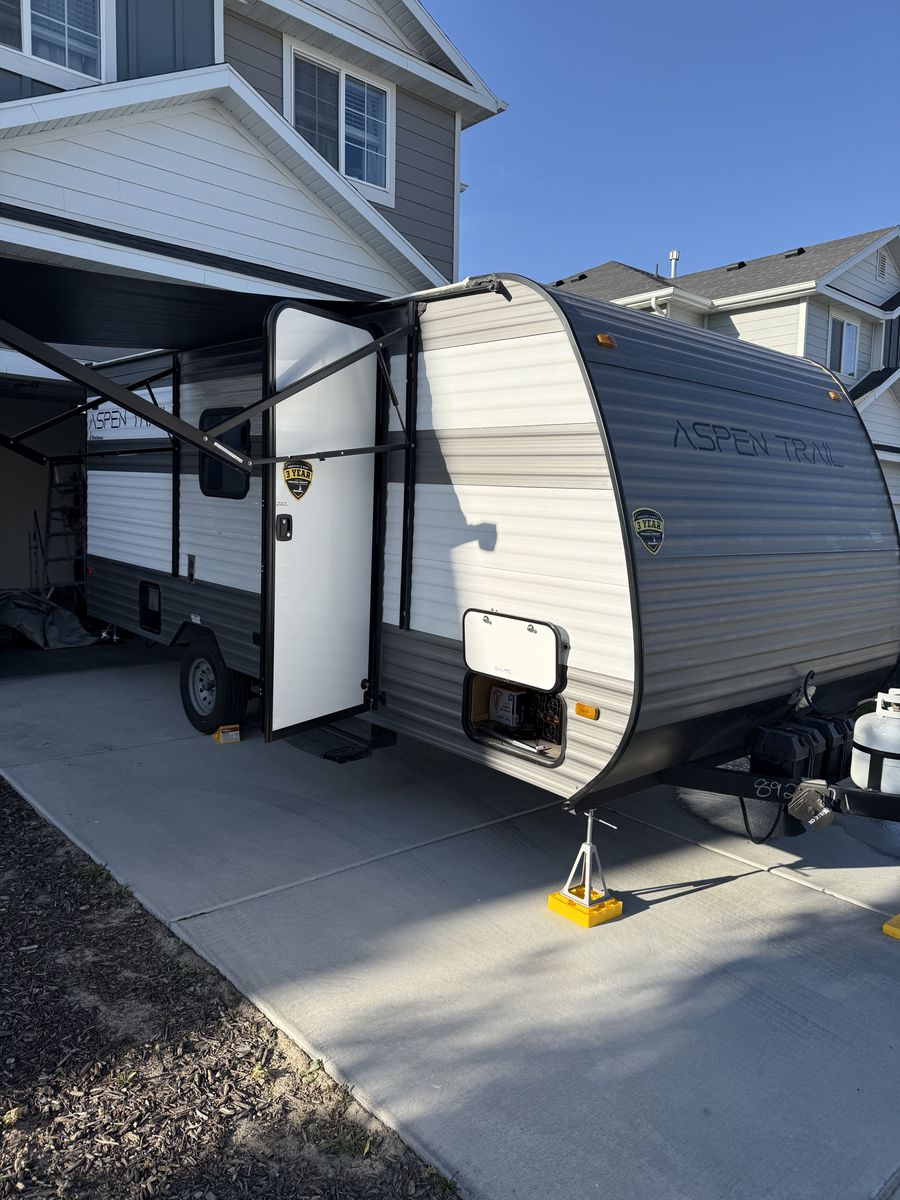 Beautiful and in excellent condition. Purchased in 2024 and used only 3 times. Sleeps 5 and comes with a rear camera, stabilizer bar (WDH), a cover, and many upgrades (over $2,000). It has a refrigerator, microwave, heater, two-burner stove, air conditioning, electric awning, and a bathroom with a shower. Double bed, bunk bed, and dining set, where another person can sleep. Ready for camping trips..!