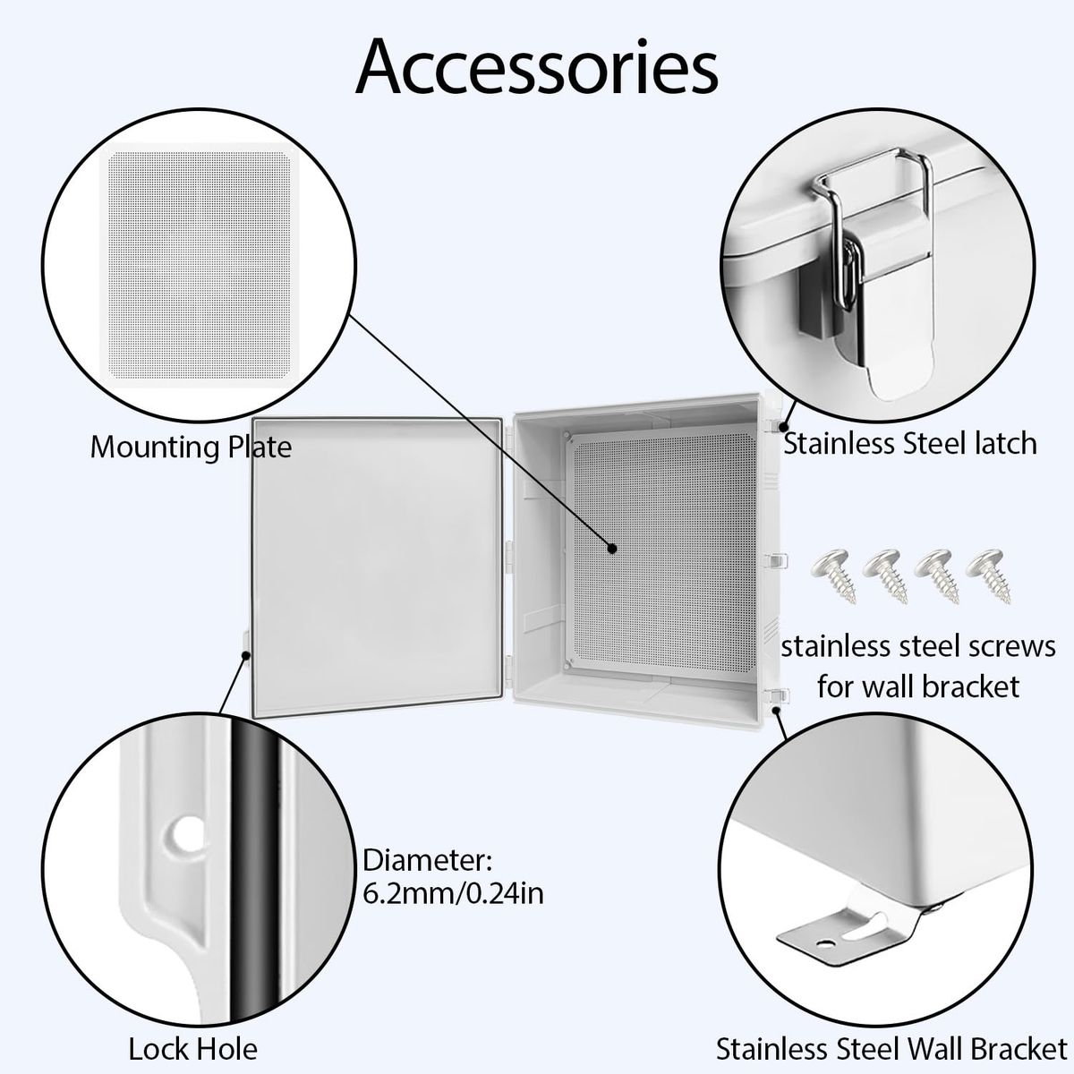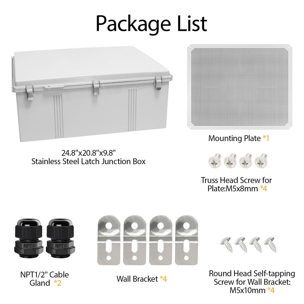 ApplePayLeMotech Electrical Box, IP67 Waterproof Hinged Cover Stainless Steel Latch Junction Box, ABS Plastic Electrical Enclosure with Mounting Plate,Wall Brackets, Cable Glands,24.8"x20.8"x9.8",Grey