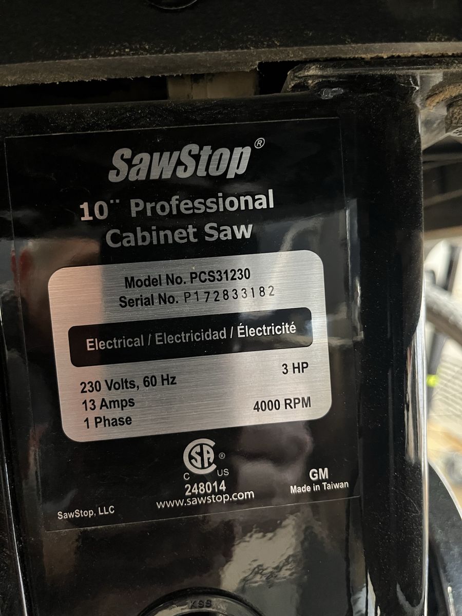 Venmo36 inch table with mobile base. White we used in home shop. Currently sells for $4380 new. I also have a 3 hp Oneida dust collector for sale as well as several saw blades.