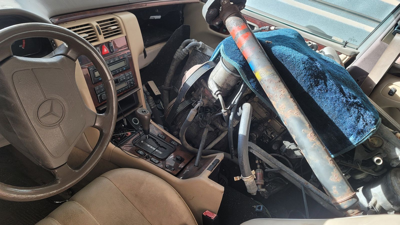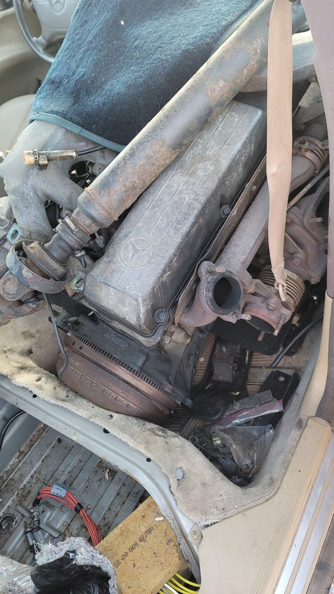 Running 1998 300D with an OM603 turbo in the passenger seat. This is one running car with an additional Mercedes Diesel engine in the front passenger seat, see photo. Keys and title come with the 300D. $5500 for the package. The OM603 ran when pulled. Car is located in a locked storage unit in zip code 84761. Car runs but not roadworthy. Can be driven a short distance for loading. /8O1=36eight, nine three50