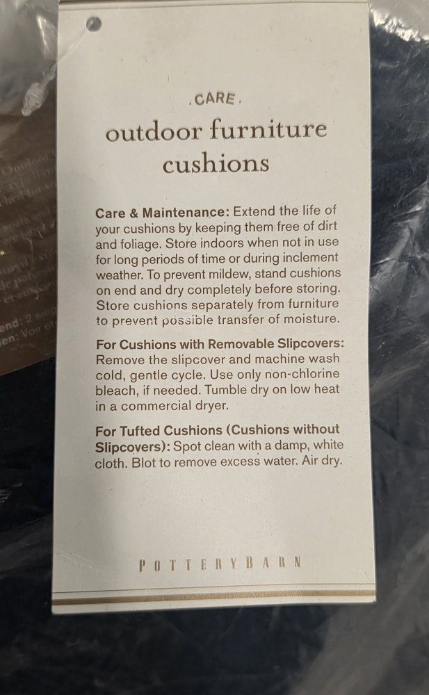 Pottery Barn outdoor seat cushion for Chesapeake/Hampstead sofa set