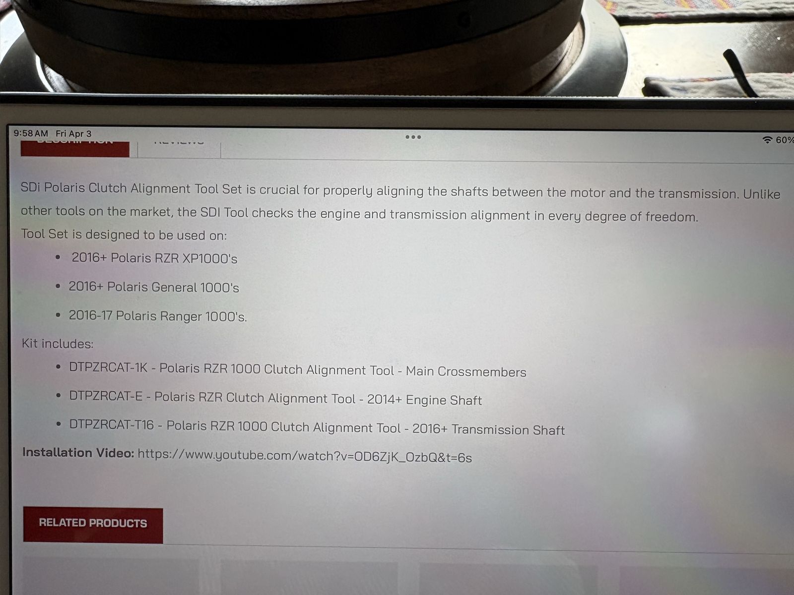 VenmoClutch Alignment tool for 2016 + RZR XP, General 1000 and Ranger 1000.