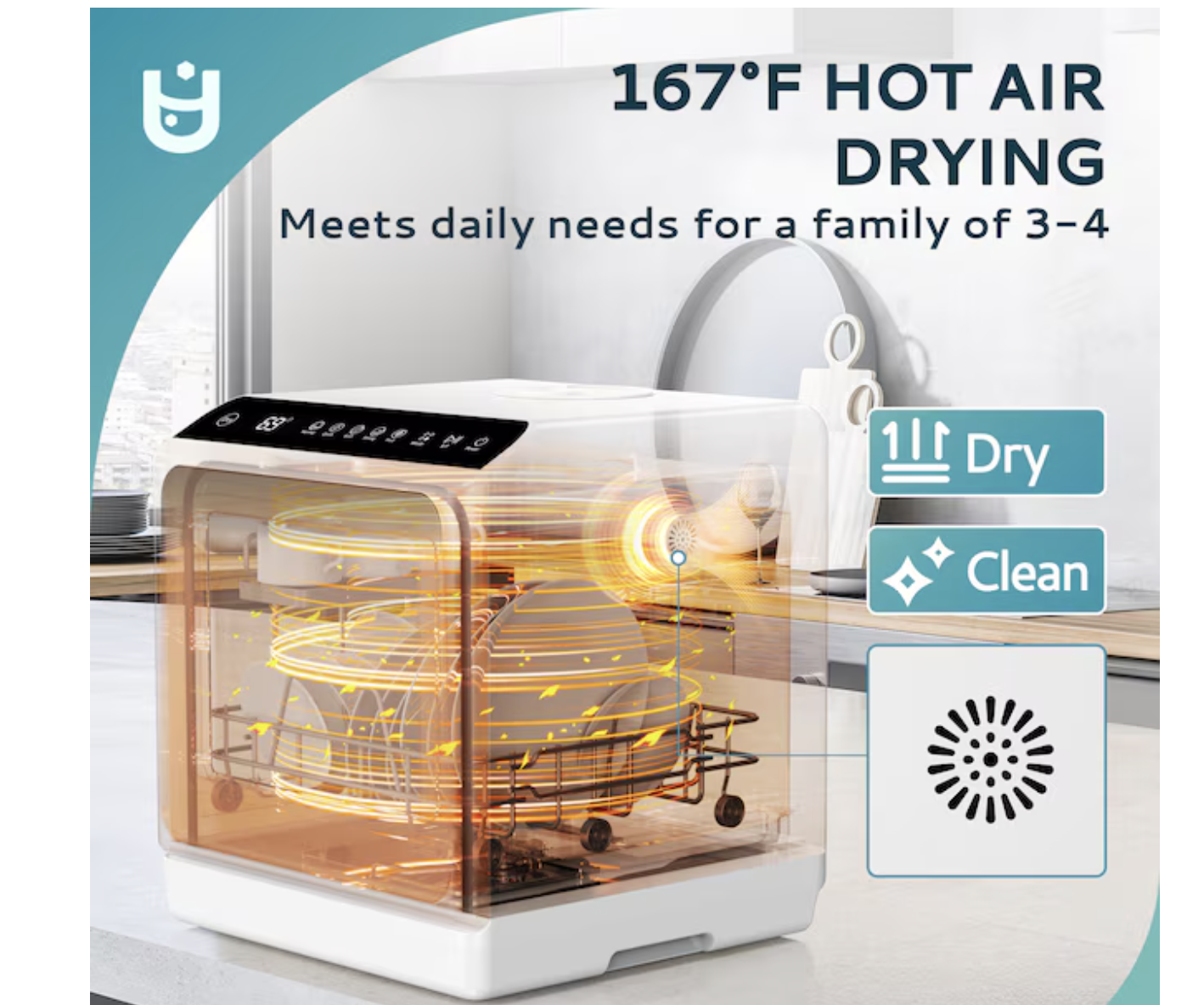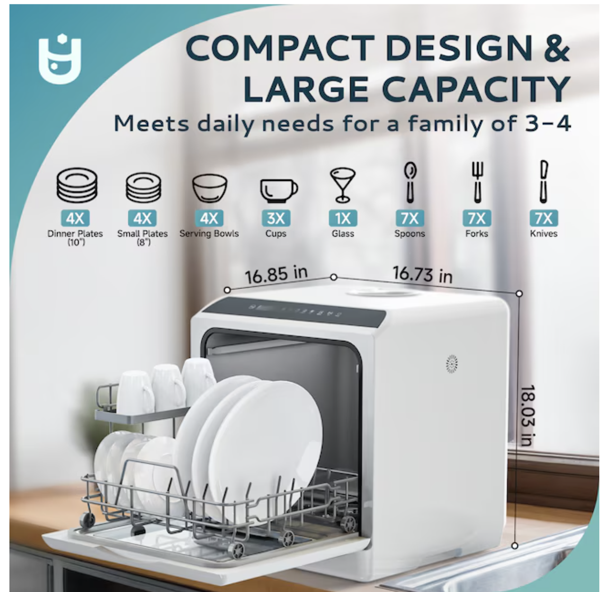 Brand new in box, 16.85 in. Portable Countertop Dishwasher in White with 3-Cycles 6-Modes 4-Place Settings Capacity and 40 dBA
