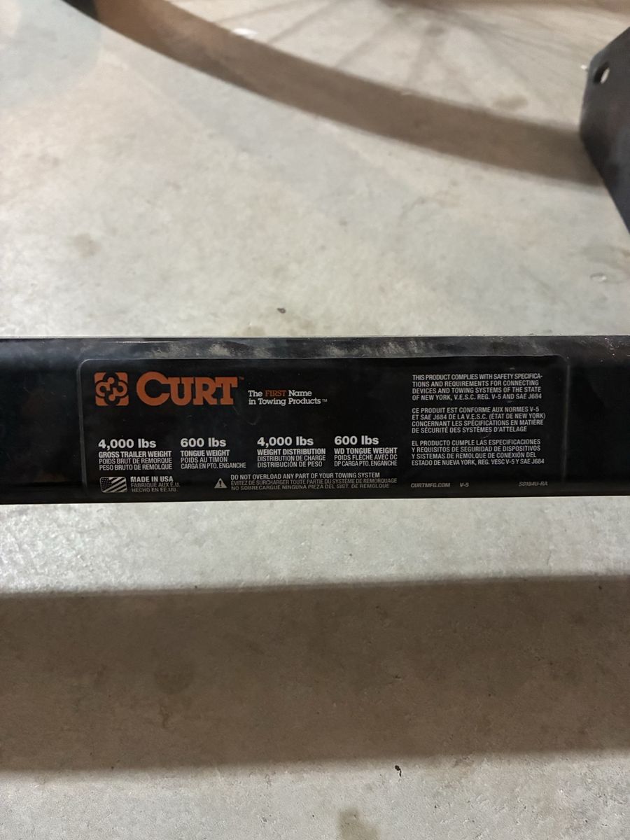 VenmoSturdy CURT trailer hitch. Used for 4 months for bike rack. Easy install, just 4 bolts. Gross trailer weight 4000 lbs, tongue weight 600 lbs. Made in USA. Also have roof rails available in another listing if you need em! Will NOT respond to is this still available. Text or call. If you buy roof rails and hitch I’ll give discount.