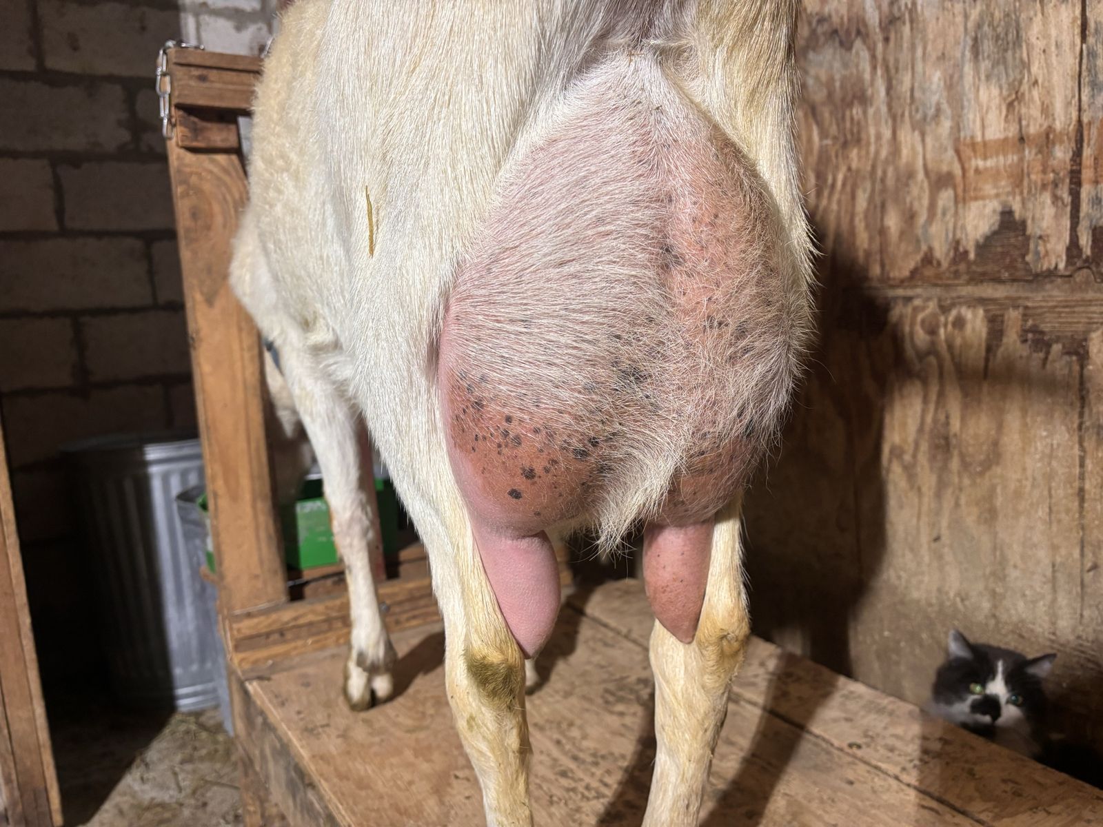 This is Rory , a registered 91% LaMancha. She gave birth April 7 and is giving us close to a gallon a day. She will come with her registration certificate. She is 2 + years old, and has freshened twice, giving birth to two kids, then three kids.