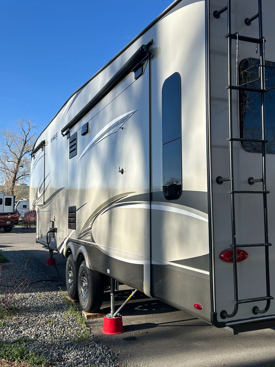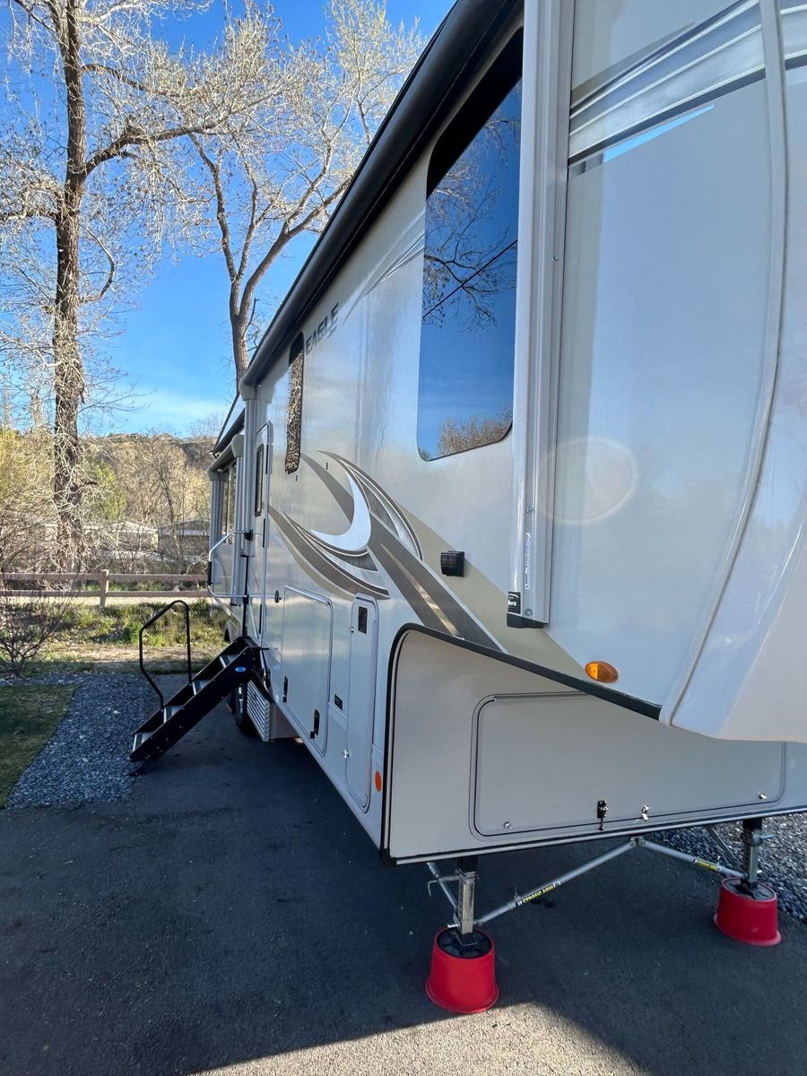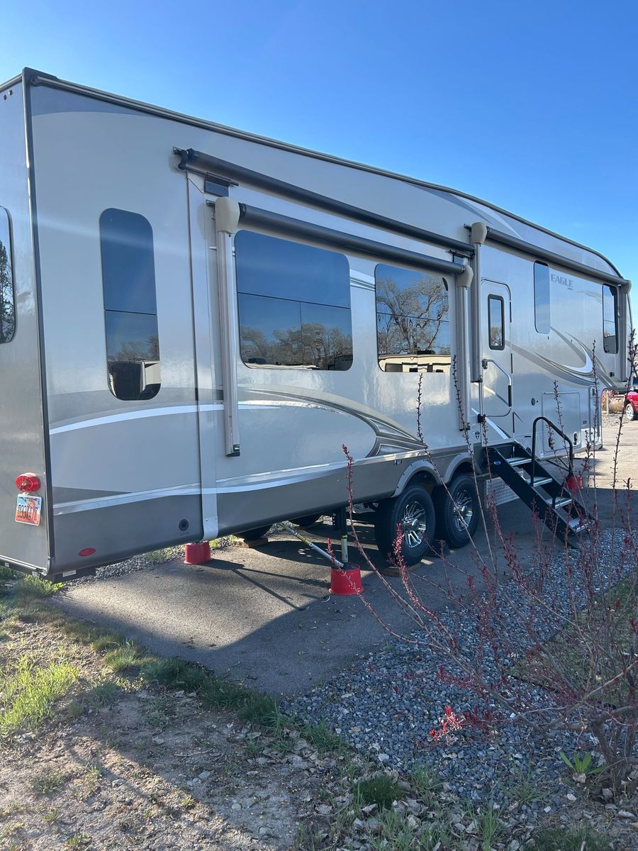 2020 Jayco Eagle 321RSTS 5th Wheel. 3 Slide Outs with awnings, 2 Awnings, Dual A/C Units, Sleeps 6. – Luxury Fifth Wheel Loaded with Upgrades. It was stored in a locked and covered storage unit when not in use.