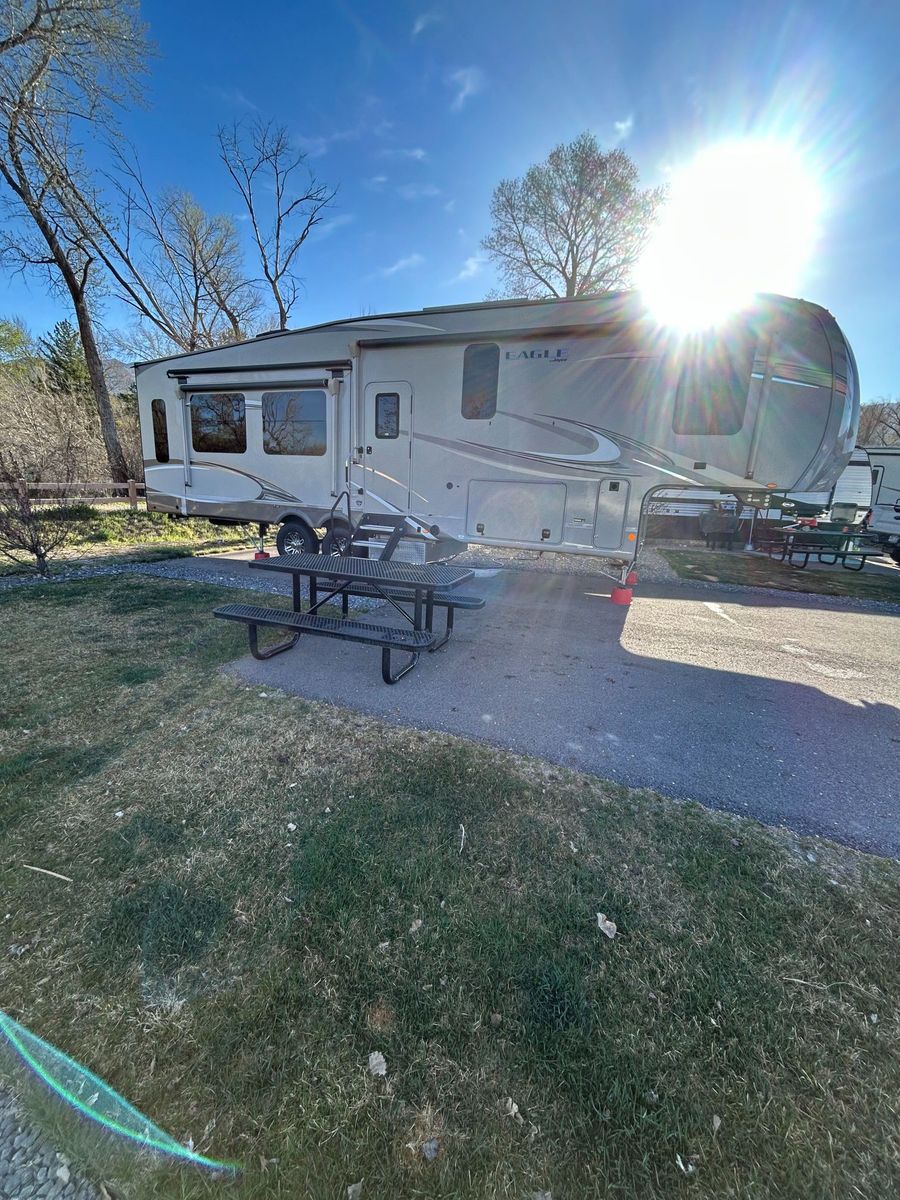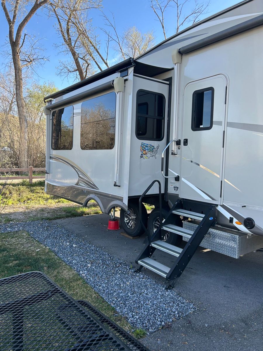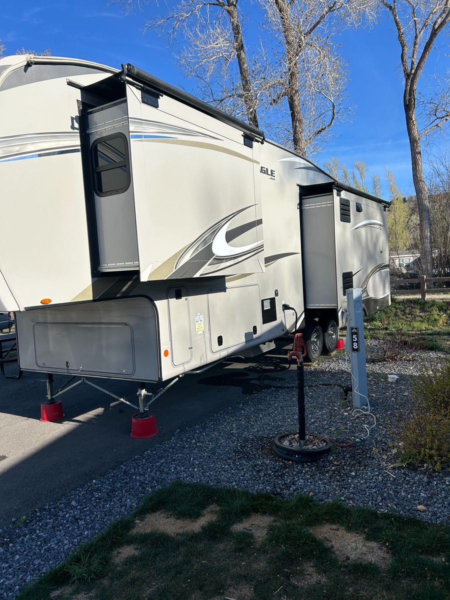 2020 Jayco Eagle 321RSTS 5th Wheel. 3 Slide Outs with awnings, 2 Awnings, Dual A/C Units, Sleeps 6. – Luxury Fifth Wheel Loaded with Upgrades. It was stored in a locked and covered storage unit when not in use.