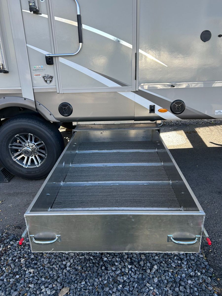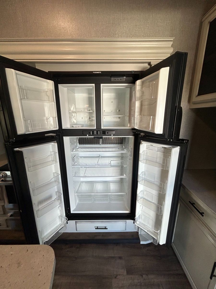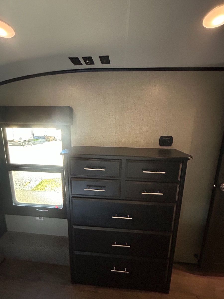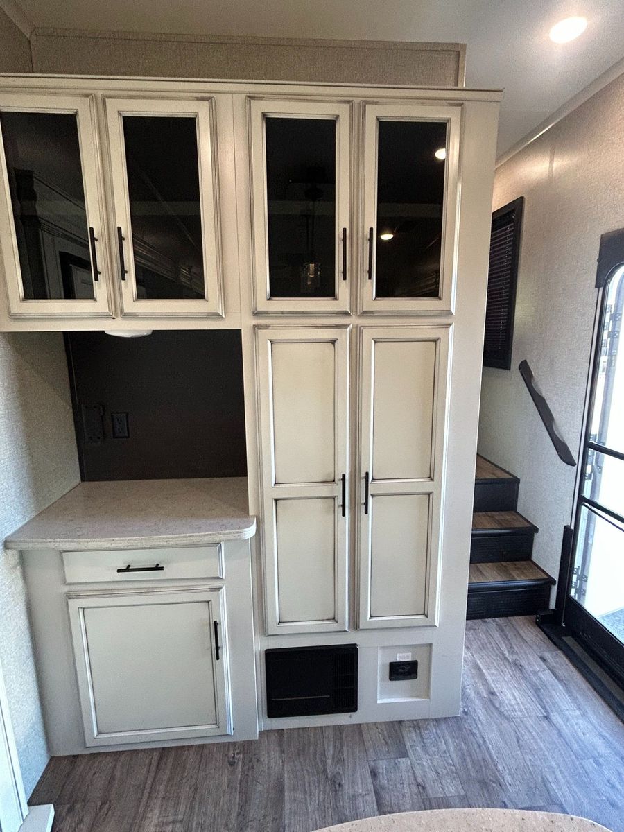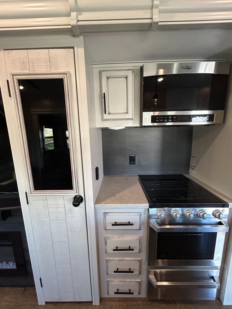 Fifth Wheel Experience true residential comfort on the road with this 2020 Jayco Eagle 321RSTS fifth wheel, a premium travel solution designed for extended stays, full-time RV living, and luxury camping experiences. The highly sought-after rear living (RSTS) floorplan with triple slide-outs creates a wide-open interior that feels more like a residential apartment than a traditional RV. The rear living area features theater seating, a tri-fold sofa, and an entertainment center with fireplace, making it the perfect space to relax after a day of travel or outdoor adventure. The kitchen is designed for real cooking, not just convenience. You will find solid surface countertops, a large refrigerator, microwave, oven, and plenty of cabinet space, along with a kitchen island that adds prep space and functionality. Whether you're hosting guests or cooking for extended stays, this layout delivers. Upstairs, the private master suite offers a walk-around King bed, large wardrobe, and washer/dryer prep, making this unit ideal for full-time RVers or long-term travelers. The spacious bathroom includes a large shower, vanity, and linen storage, providing comfort and convenience similar to a residential home. Jayco’s commitment to quality shows throughout with features like Goodyear tires, MORryde suspension components (on many builds), Climate Shield insulation package, and strong frame construction, giving you confidence whether you're parked long-term or traveling across the country.