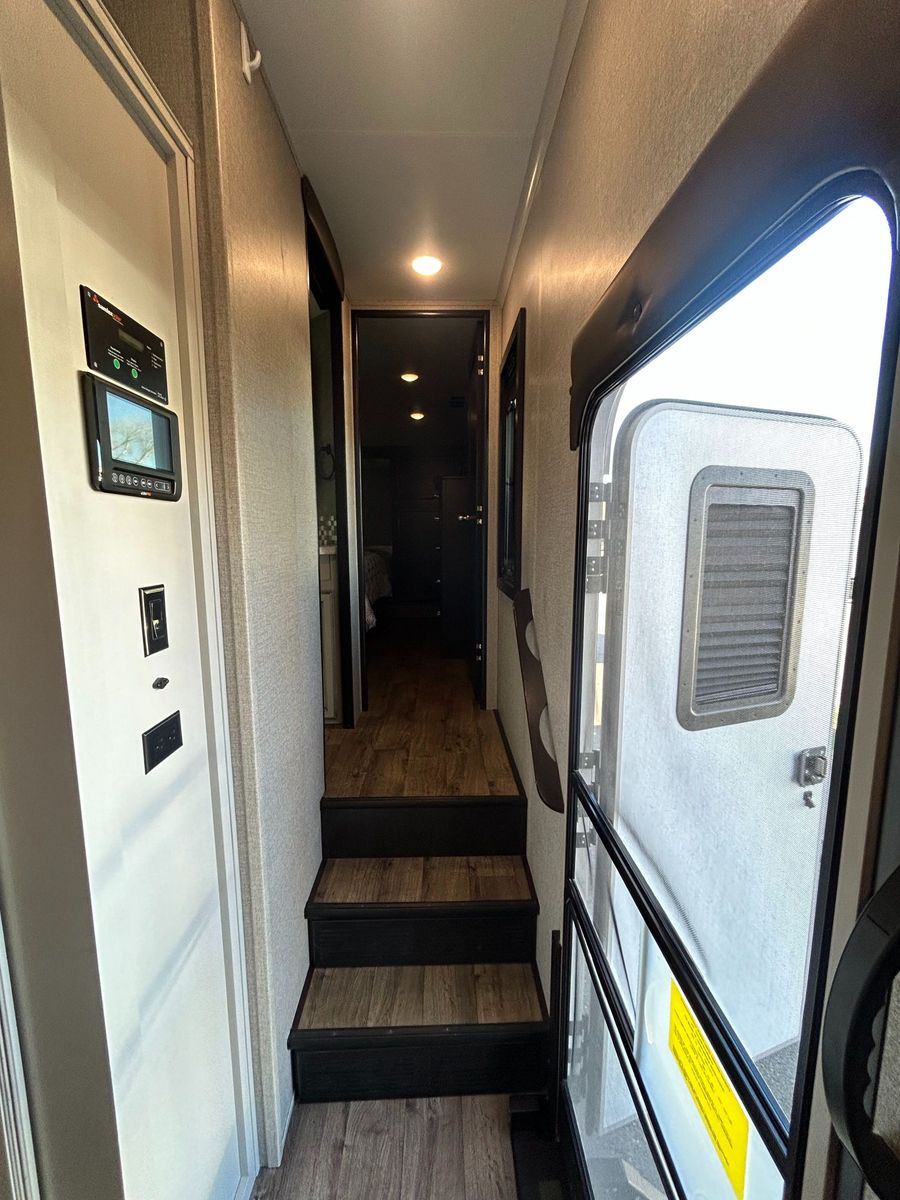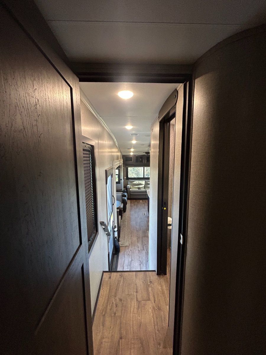 This layout blends an open-concept living area with a private master suite, making it ideal for extended stays or full-time RVing.