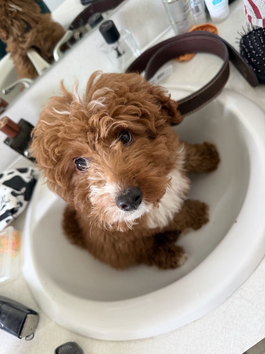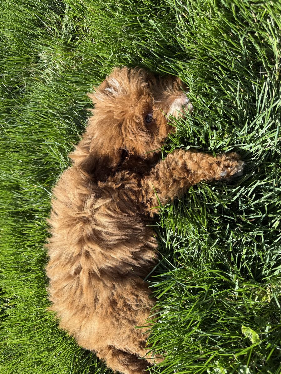 This is who my kids call Ted or Teddy. He is a 10 week old golden doodle mini with all his vaccines and he is needing a forever home! He is great with other dogs, cats, kids, and is very calm and docile for a pup. He would rather cuddle you all day than play games. He is working on his potty training and doing great, half kennel trained an is food motivated for training! Hoping to find him a forever home as soon as possible! Make him your Easter bunny gift for your family.