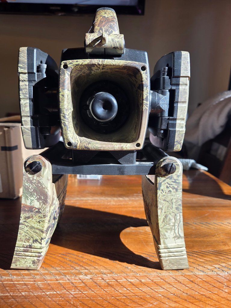 VenmoWorks great! Comes with the remote, swiveling speakers, and stand. Camo finish, tested and ready to go. Perfect for coyote hunting! $150 OBO