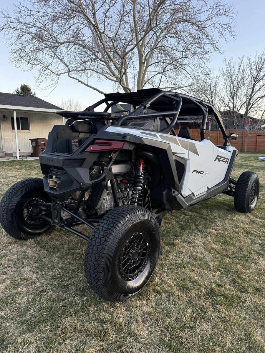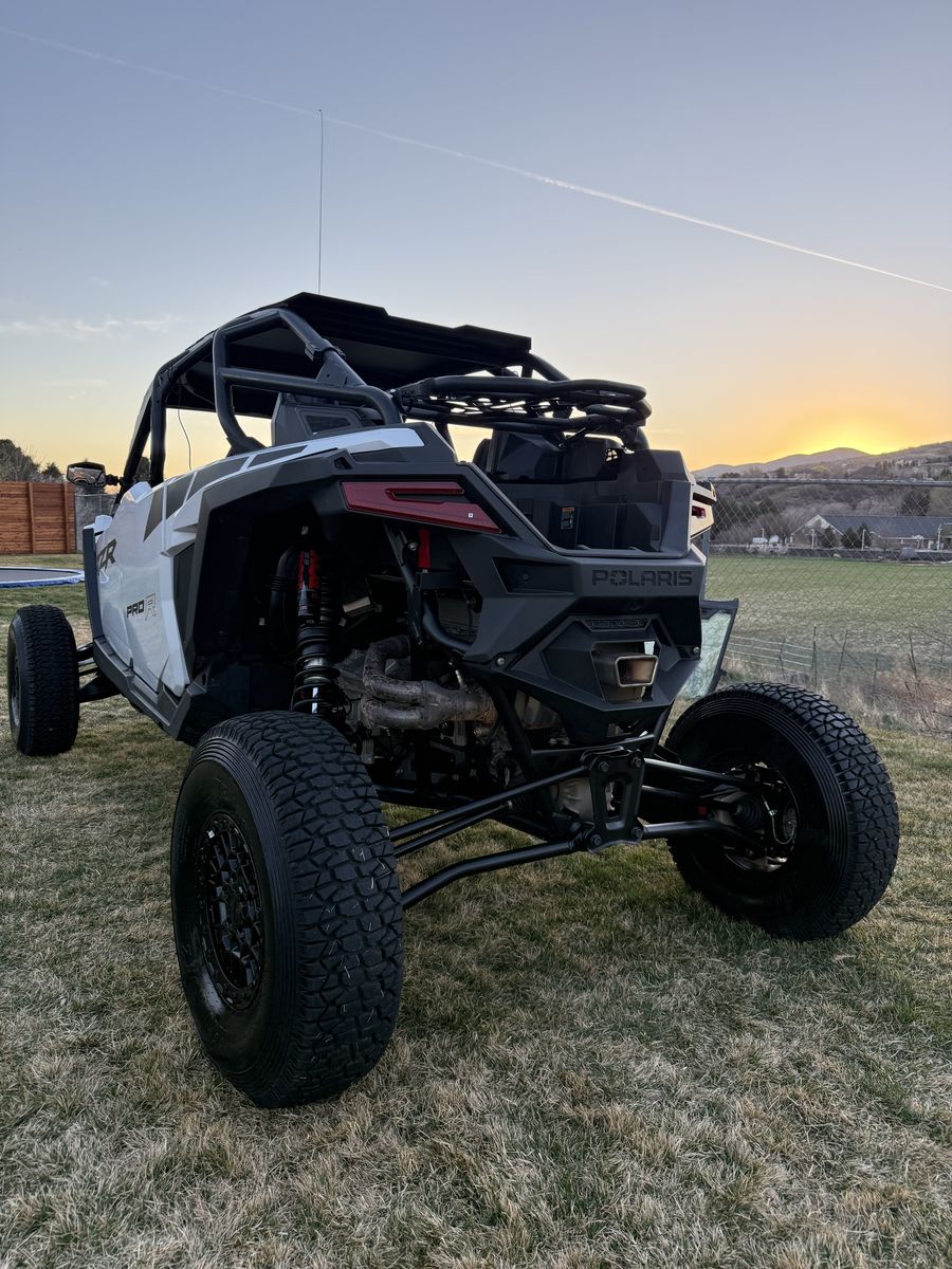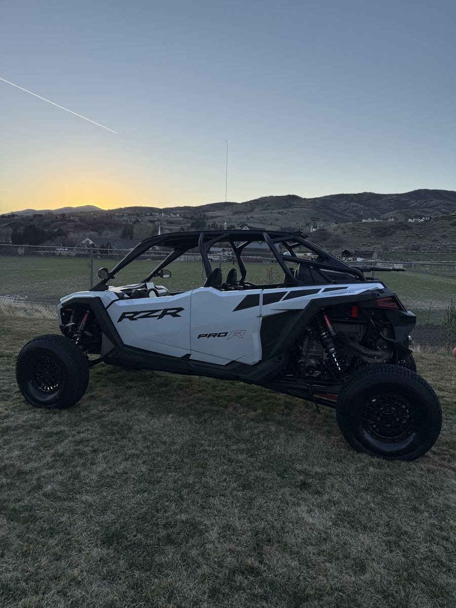 2026 Polaris RZR PRO R 4-seat Ultimate – Loaded & Ready to Ride! 2026 RZR PRO R Ultimate 4 1,070 miles or 32 hours with 33 Tensor Tires (and comes with a complete brand new set of tires on the side). Dynamic Eletronic suspension which is a game changer on and off the trail. With the push of a button you can change the suspension from Baja, Trail, Track, and Comfort modes. Inside cabin air pumps installed and included to pump cool air into your helmet dust free. Has a custom installed VSC-RS speed controlled race series mobile radio. After market spare tire mount on back that is paint matched. AC vented and heated seats. Comes with 2 custom installed amber lights on the front bumper that light up the trail in the dark like never before. Amazing! Pro star Fury 2.0 225 HP Engine Pro Performance giving you endless power. Drive and passanger side door bags. This machine is set up and dialed in. Well maintained. Don't miss out on this deal. Why buy from a dealer and pay all the dealer fees and sales tax when you could save several thousand on a 2026 model? Only 1,070 miles or 32 hours – Save thousands over buying from a dealer This is the top-of-the-line 2026 RZR PRO R Ultimate, and it’s fully loaded with all the latest features and some smart upgrades. It’s powered by the incredible ProStar Fury 2.0L engine putting out 225 HP—you won’t be left behind. Highlights: • Dynamic Electronic Suspension – Easily switch between Baja, Trail, Track, and Comfort modes with the push of a button for a truly customized ride. • AC Vented & Heated Seats – Another 2026 upgrade. Stay cool in the summer and warm in the winter. Game changer. • 33” Tensor Tires currently mounted – Excellent traction and ride quality. I’ll also include the original OEM set of brand new tires so you don’t have to worry about tires for a long time. • Custom-installed VSC-RS Speed Controlled Race Series Radio – Stay connected out on the trail. In addition, it allows all 4 people inside the cabin of the RZR to speak to each other through helmets with built in microphones making it fun on the trail to communicate with ease. • Air pump system for helmet cooling and dust free experience – Keep cool on longer rides. • Color-matched aftermarket spare tire mount – Looks clean and professional