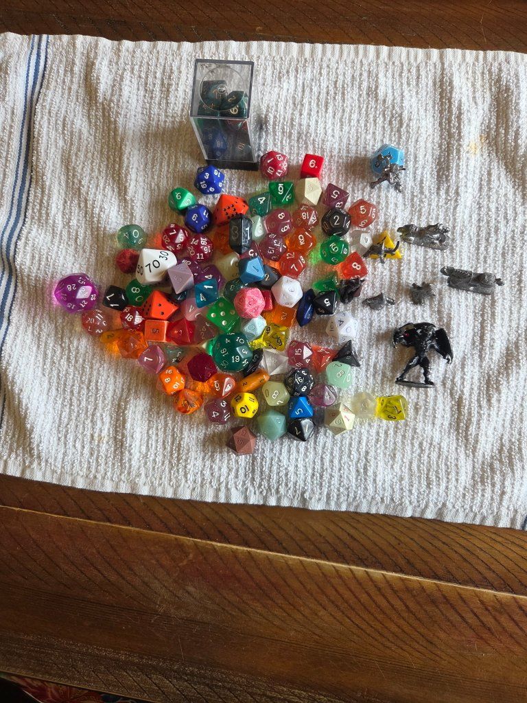 Classic AD&D 2nd Edition Planescape supplement by Monte Cook. 4 cool painted dragon minis (great for display) and big assortment of colorful polyhedral dice with storage case and a couple extra minis.Perfect starter bundle for Planescape or any D&D campaign!