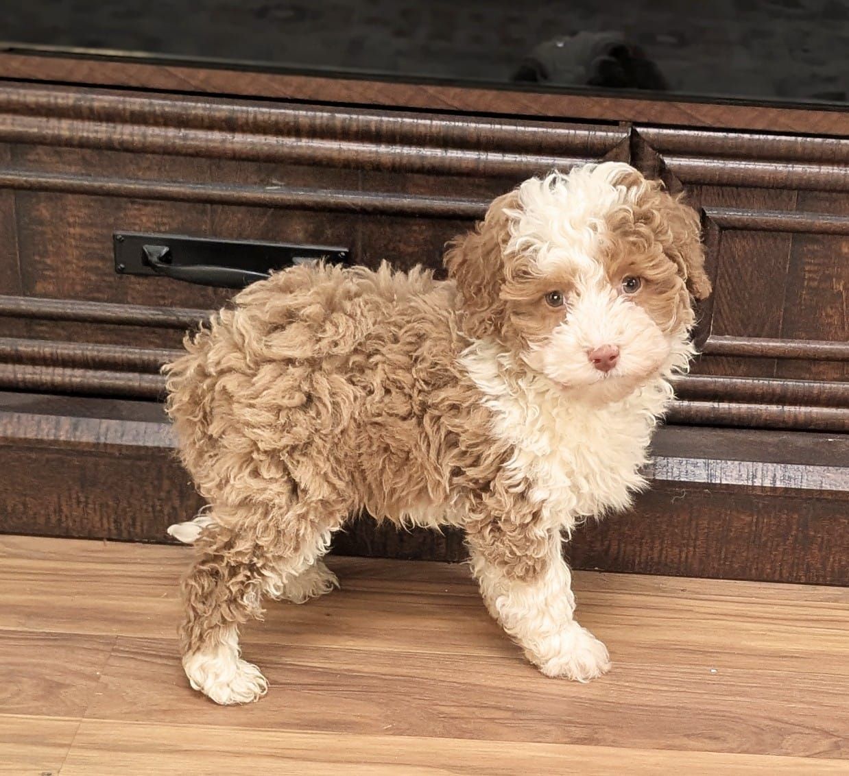 ZelleMeet this adorable Micro Bernedoodle, the perfect blend of cuddly, smart, and compact! Expected to be around 15–20 lbs full grown, this pup is ideal for families, apartments, or anyone looking for a smaller companion without sacrificing personality.