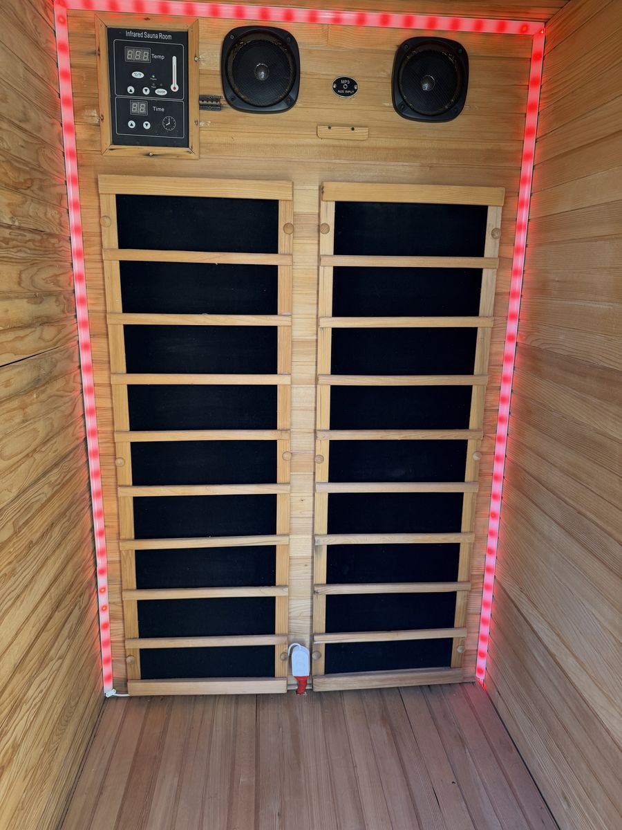 • breaker box and electronic has been moved to back of sauna so it’s perfect for cold/hot contrast with cold plundge.