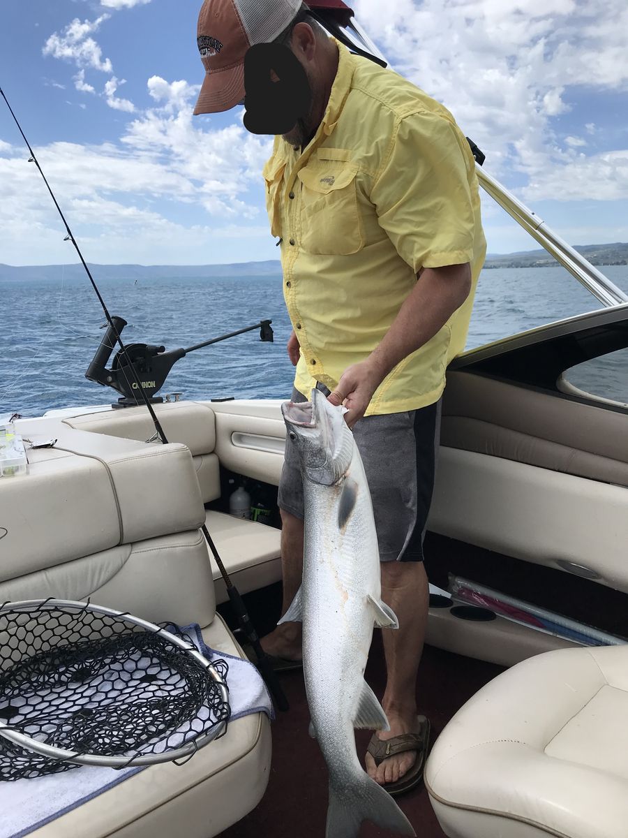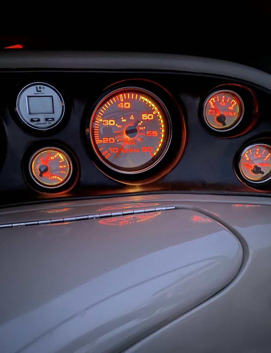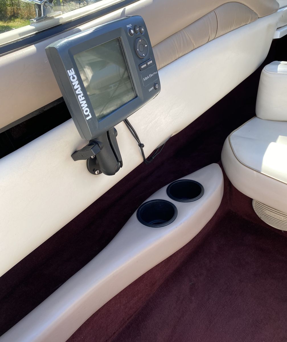 This is also an incredible fishing/trolling boat that utilizes a “Happy Troller” trolling plate which also acts as a hydrofoil when extended to get up on plane quicker. It includes a Cannon downrigger, Scotty rod holders, a Lowrance Max 5X Pro fish finder, and a Luhr-Jensen Trolling Speed indicator that measures accurately to within 1/10 of a knot. We have pulled in ALOT of nice fish trolling out of this boat.
