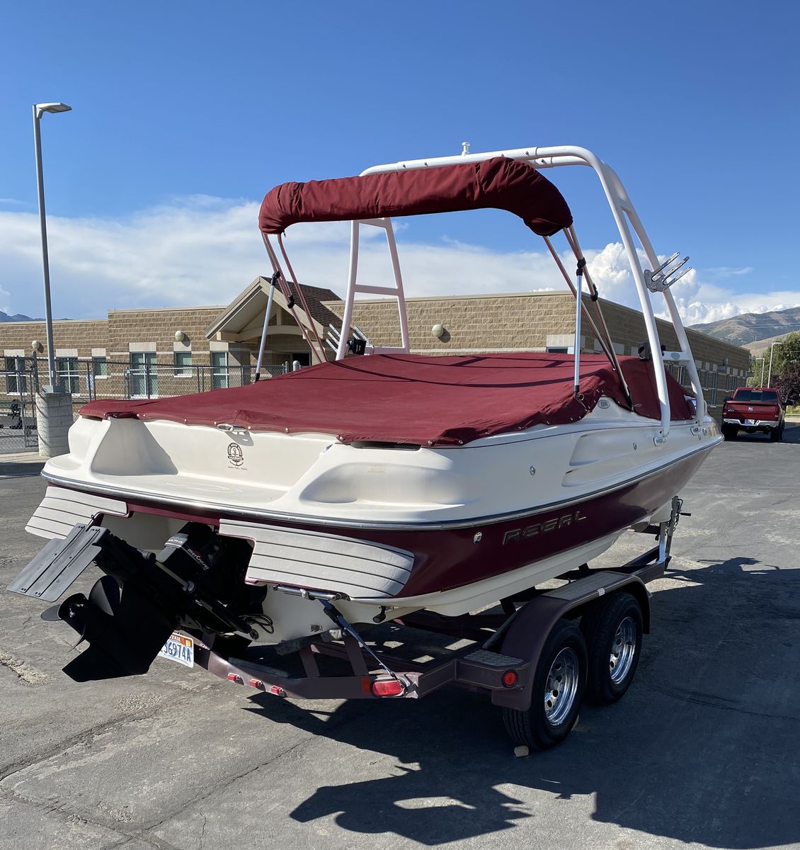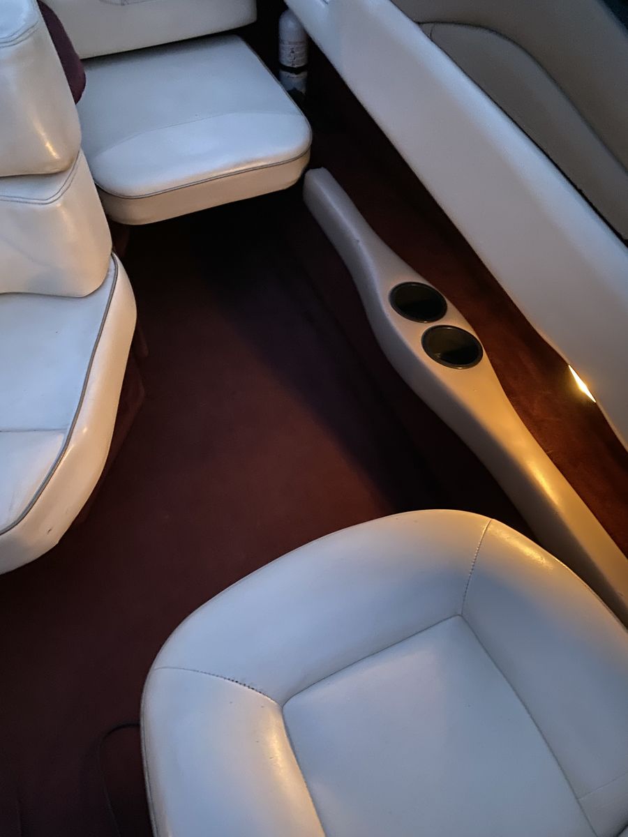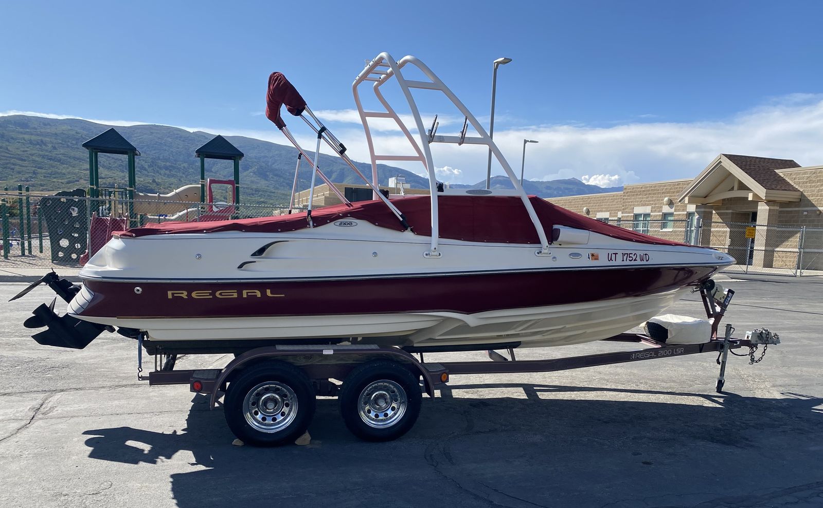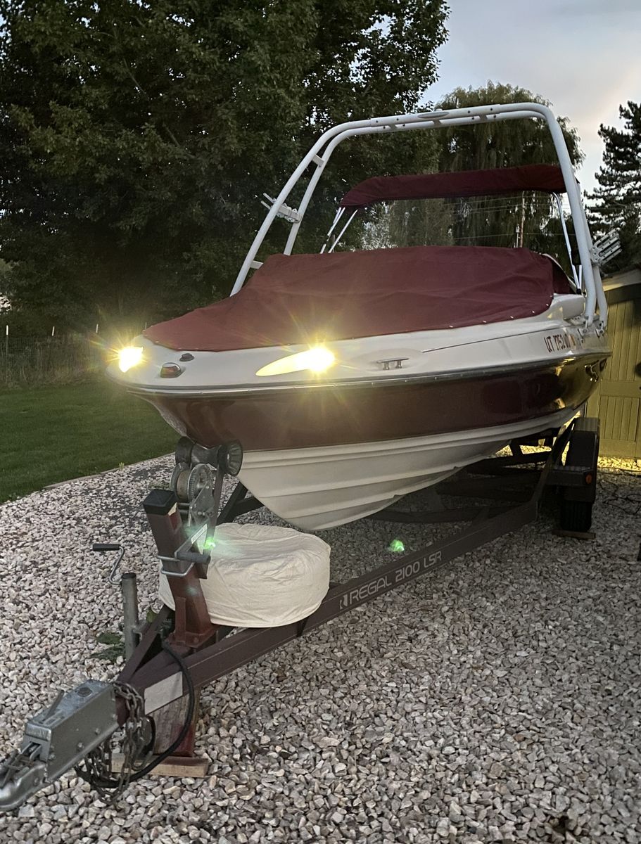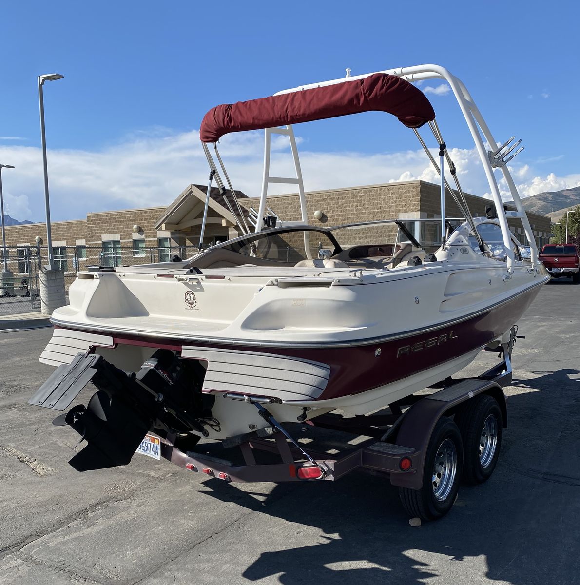 It has a great running 5.0-liter, fuel injected, Mercruiser V-8 engine that has been consistently serviced annually, as well as a BareWest Wakeboard Tower. It is made with Regal’s patented ‘FasTrac’ hull that reduces drag and friction for increased speed, a smoother ride in choppy water, and improved fuel efficiency. Also has very bright headlights and great interior lighting for evenings on the lake.