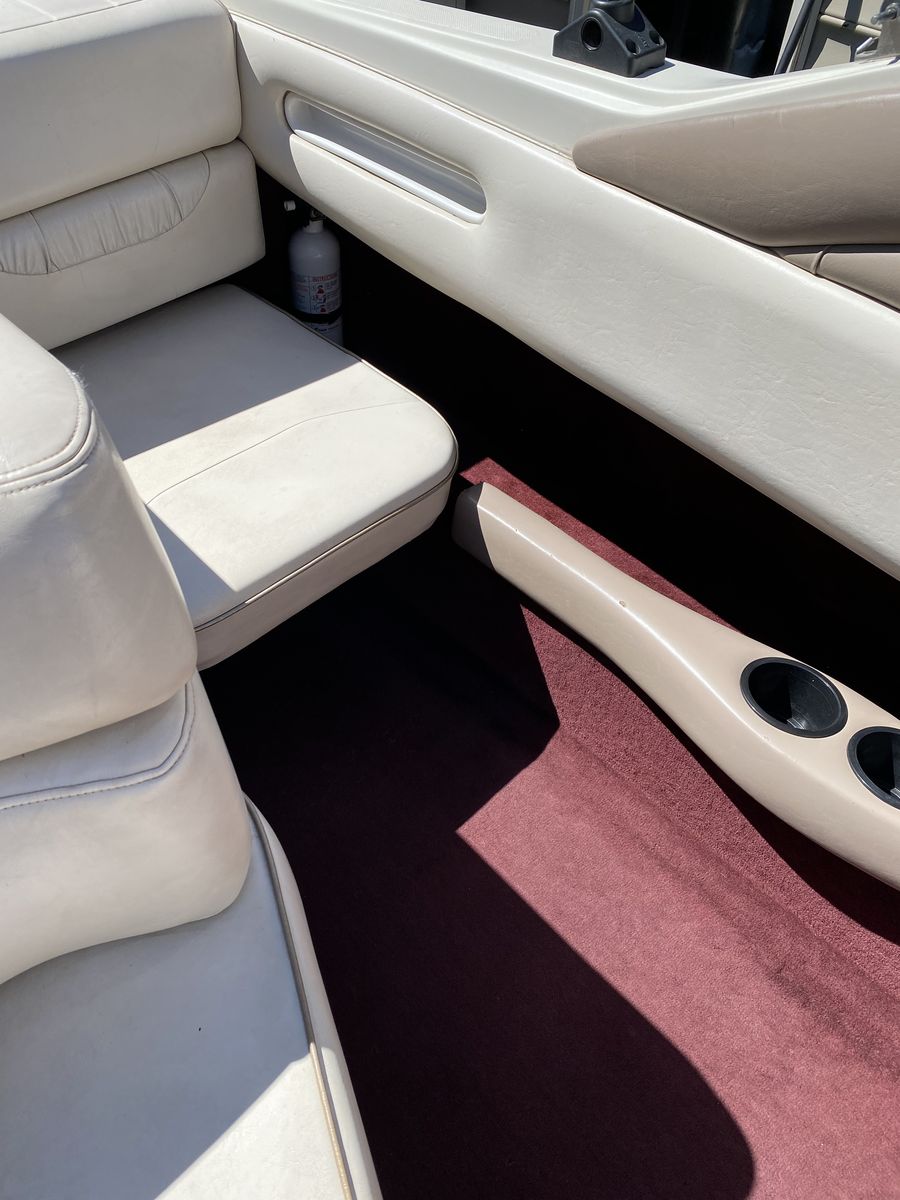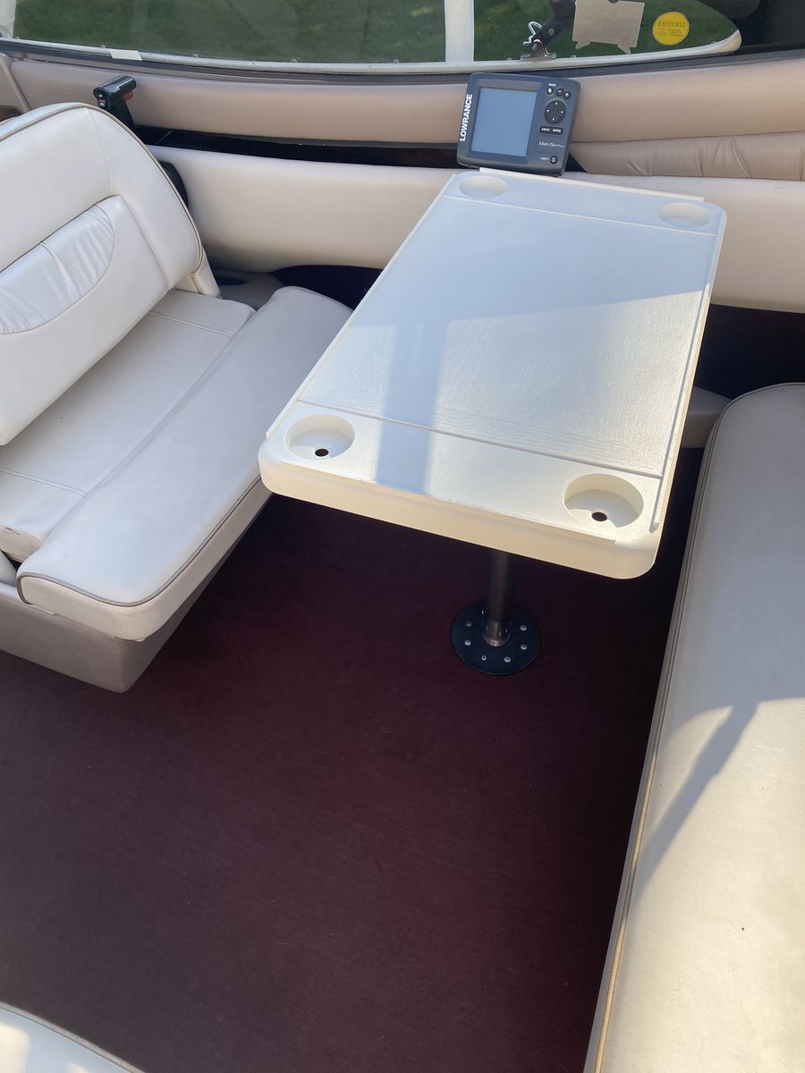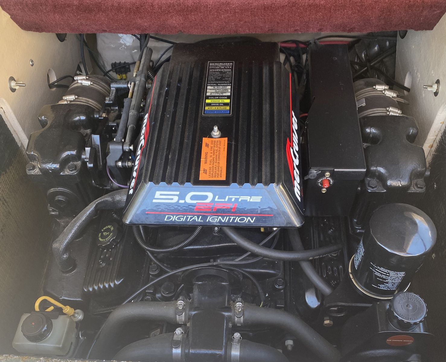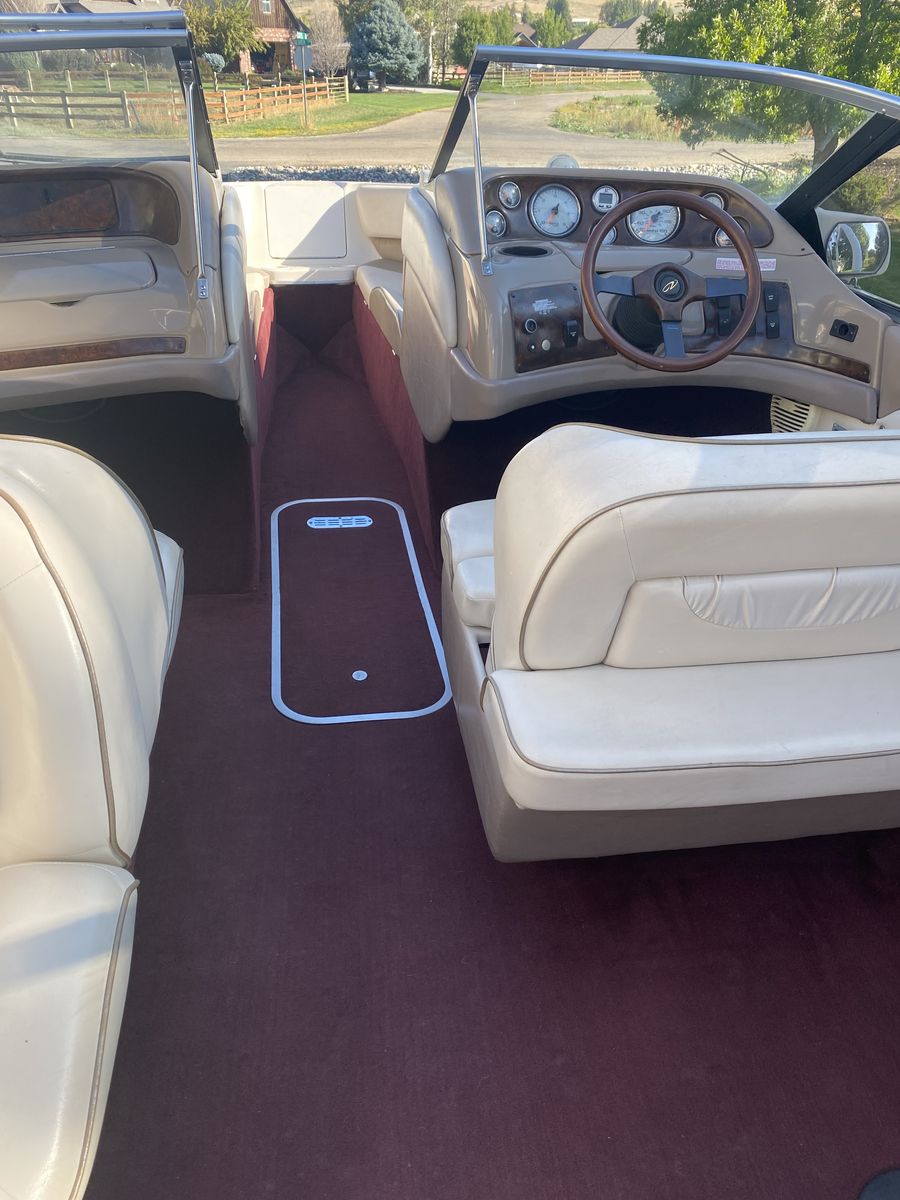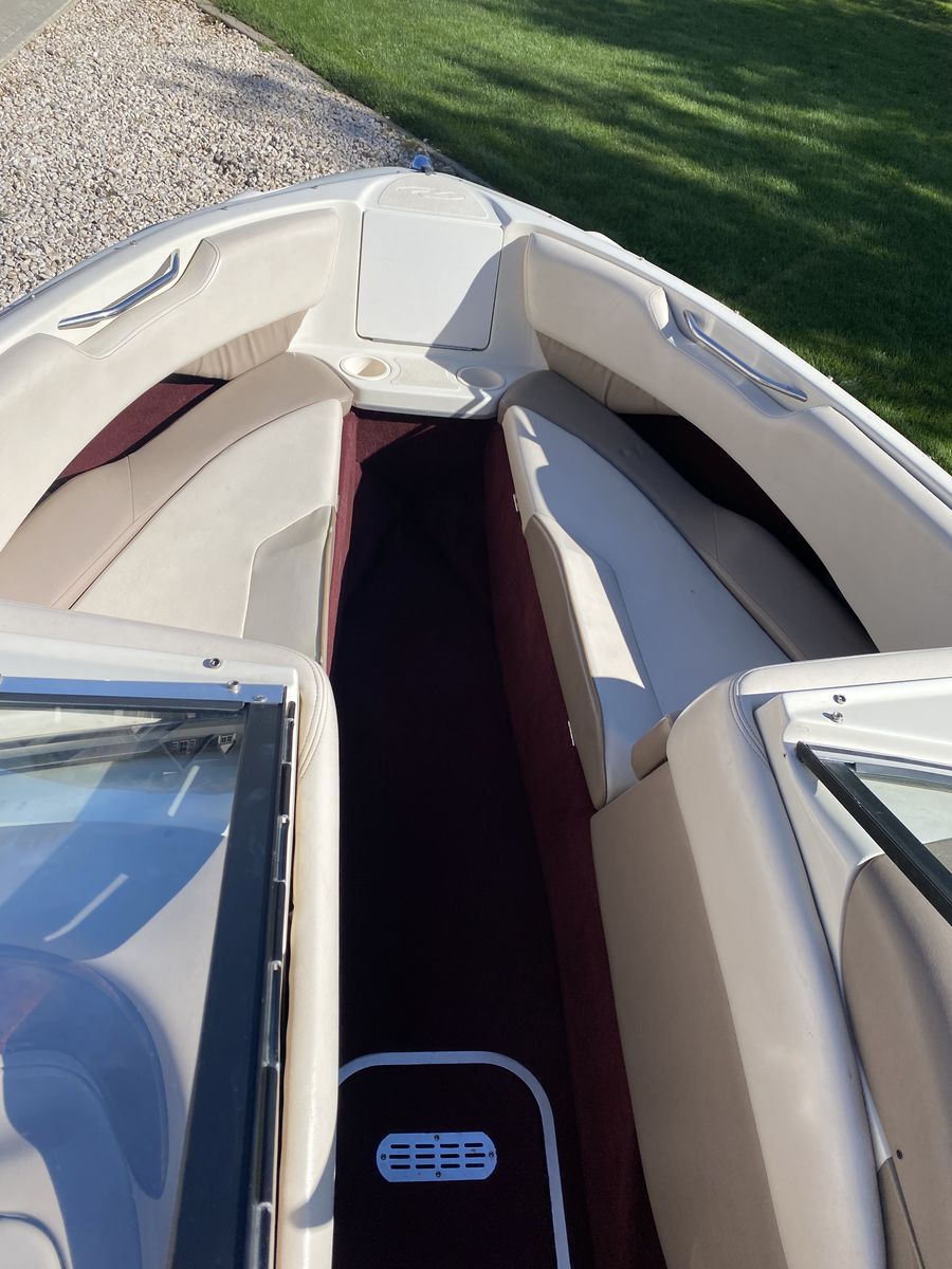 It has a great running 5.0-liter, fuel injected, Mercruiser V-8 engine that has been consistently serviced annually, as well as a BareWest Wakeboard Tower. It is made with Regal’s patented ‘FasTrac’ hull that reduces drag and friction for increased speed, a smoother ride in choppy water, and improved fuel efficiency. Also has very bright headlights and great interior lighting for evenings on the lake.