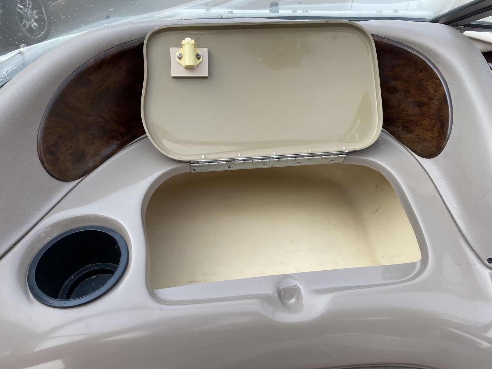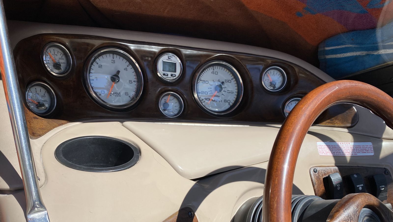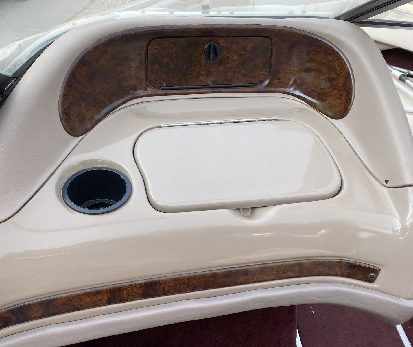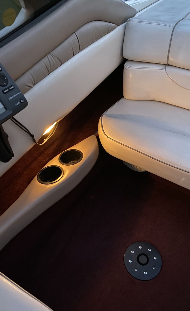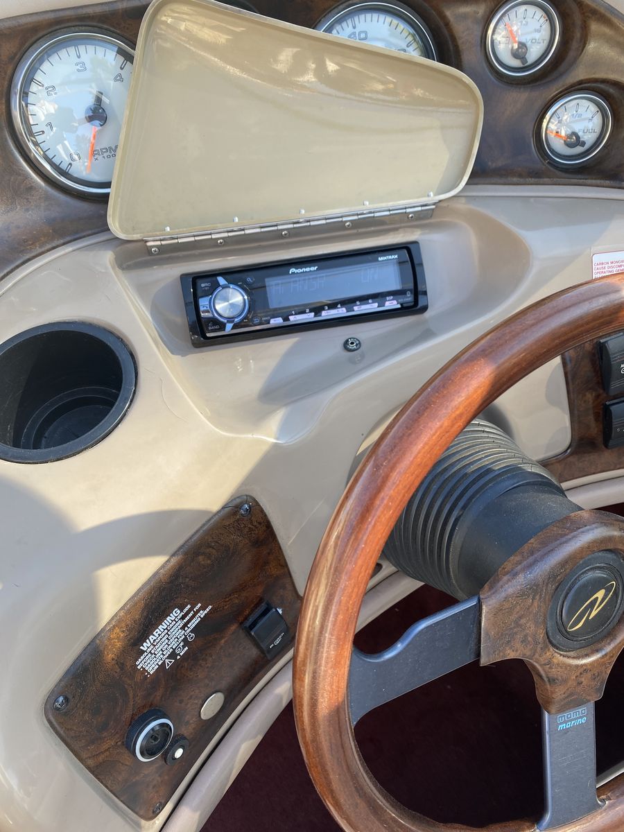 It has a great running 5.0-liter, fuel injected, Mercruiser V-8 engine that has been consistently serviced annually, as well as a BareWest Wakeboard Tower. It is made with Regal’s patented ‘FasTrac’ hull that reduces drag and friction for increased speed, a smoother ride in choppy water, and improved fuel efficiency. Also has very bright headlights and great interior lighting for evenings on the lake.
