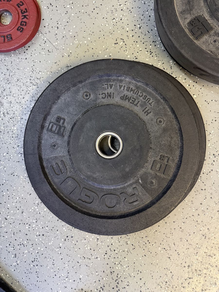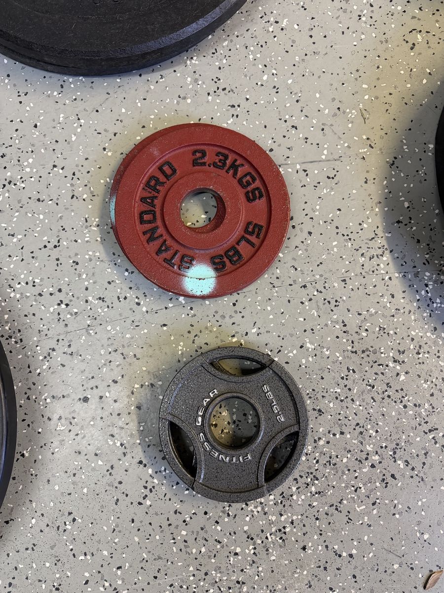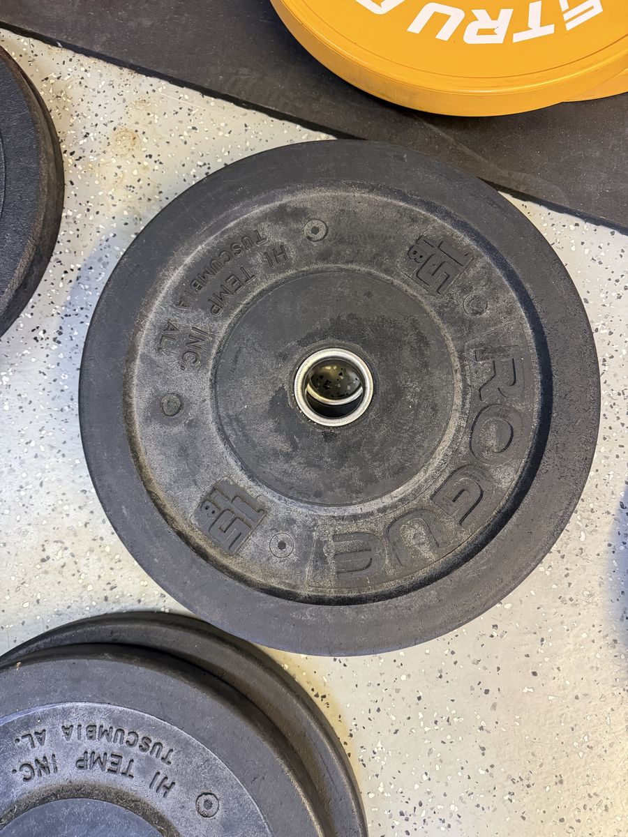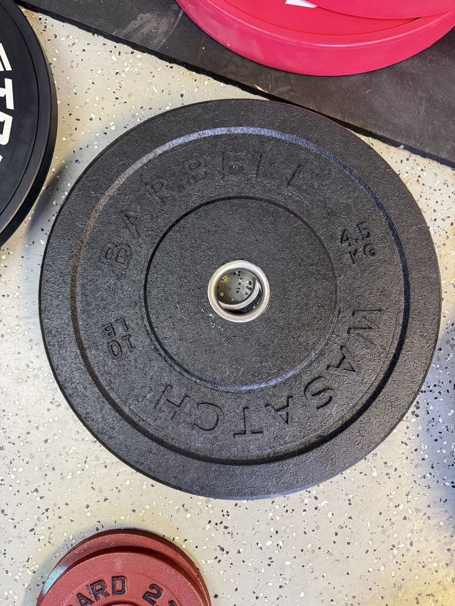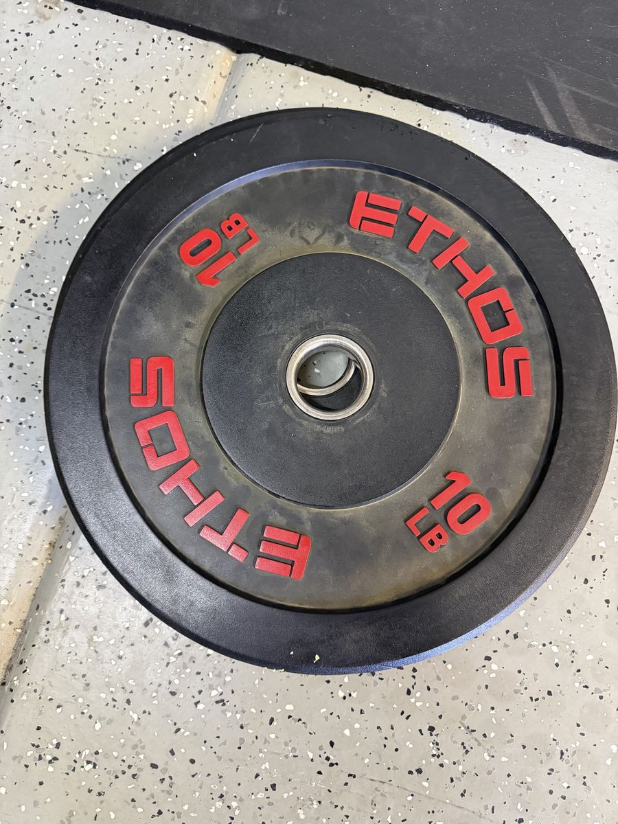 55# tru grit plates 45# ethos plates 35# tru grit plates 35# X training equipment plates 25# wasatch barbell plates 15# Rogue high temp plates 15# USA plates 10# Rogue high temp plates 10# wasatch barbell plates 10# ethos plates 5# standard plates 2.5# fitness gear plates