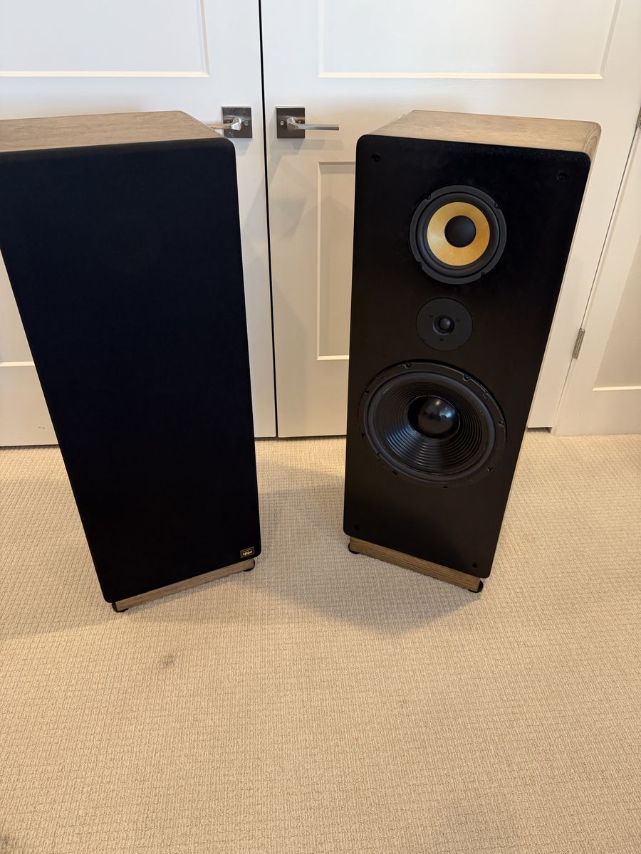 Cabinet: Refinished | Phantom Gray Stain / Satin Clear Tweeters: New | Peerless High-Definition Domes Midrange: New | RBH Reference Kevlar Drivers Woofers: Restored | Professional Reconing / New Surrounds Crossover: Rebuilt | Audiophile-grade Polypropylene Caps Binding Posts: Inspected | Gold-plated 5-way terminals
