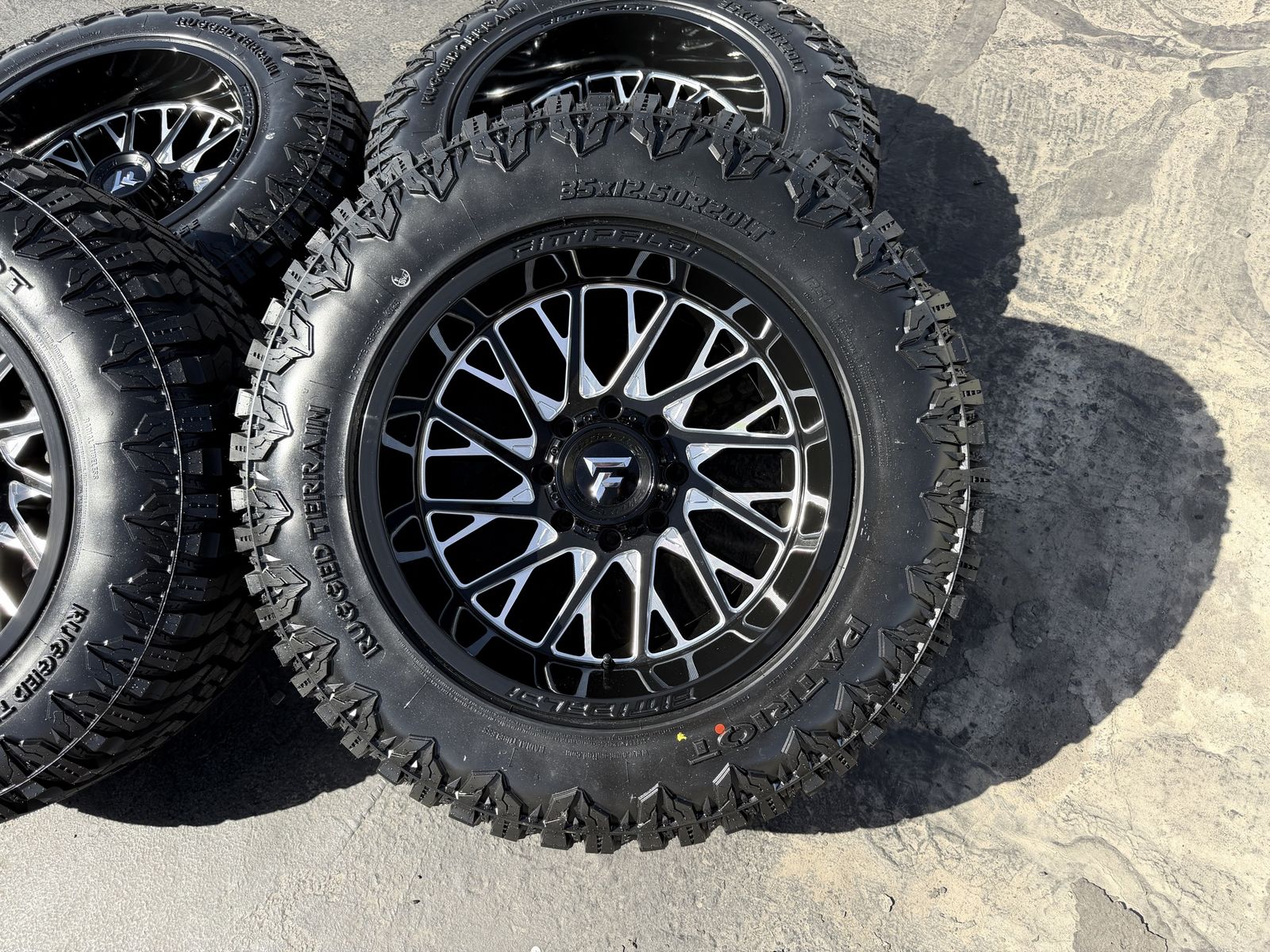ApplePayBrand new package! 20x12 -44et offset Fittipaldi FA08s gloss black and milled. Wrapped with 35x12.50r20 Patriot RT tires load range F 12 ply. 8x170 bolt pattern these fit 1998 and newer Ford F-250 F-350 Superduty Powerstroke and Excursion. Huge savings! Call or txt 435-760-1194