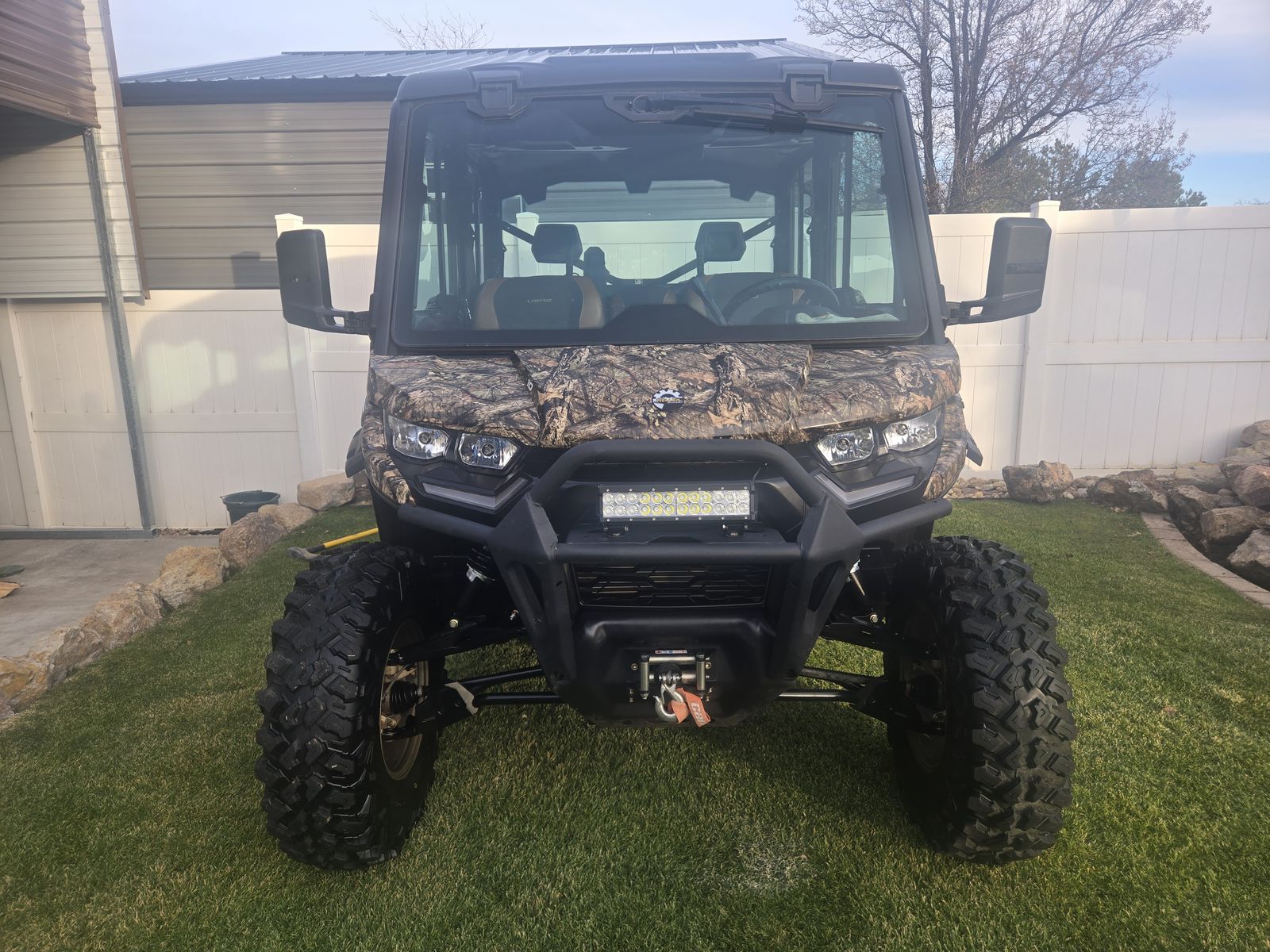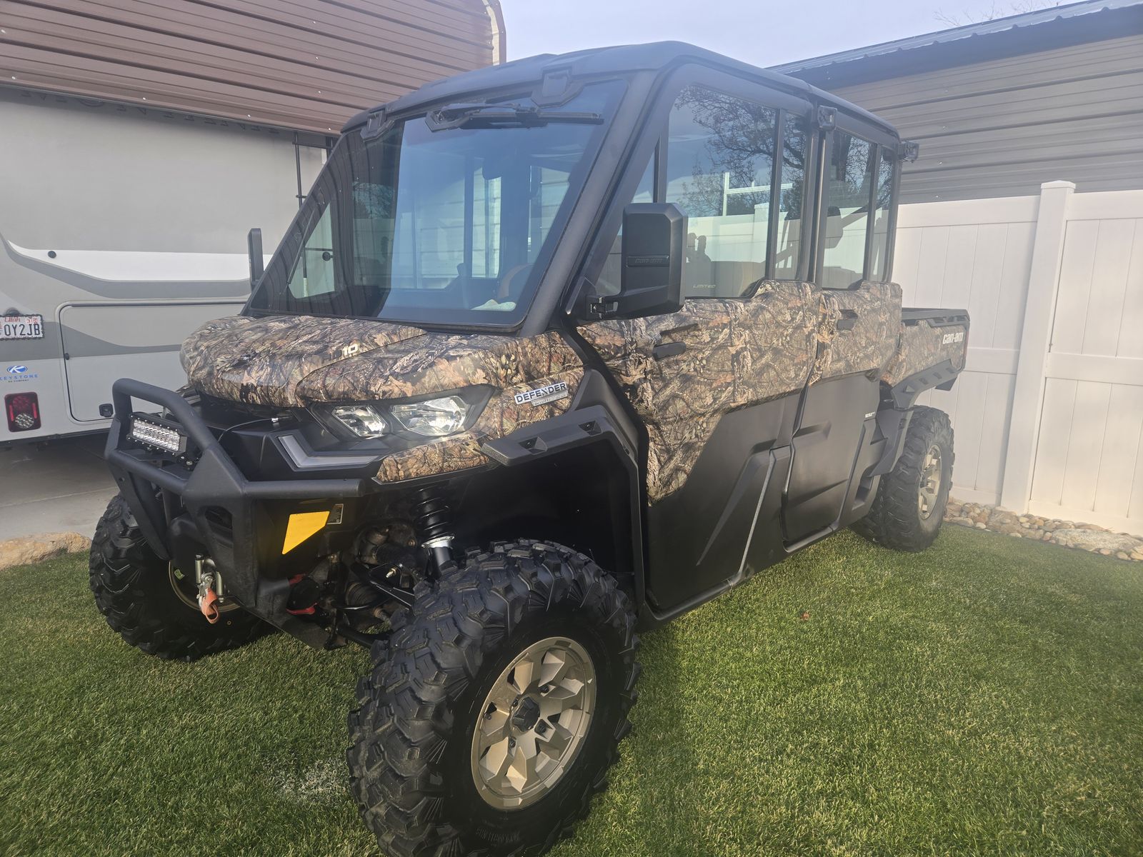 2023 Can Am Defner HD10 Camo Limited. Full hard cab with both AC and heat. Spend summers in dust free rides and warm rides when it cools off. Great hunting machine. Street legal, new tires, under seat storage, light bar, fender flares, rifle rack. It has been serviced regularly and with will maintained. 5100 miles. Because it is street legal the majority of the miles are on asphalt. Asking $23,900,new ones are going for close to $40K plus tax.Text Matt @ 801-8242844