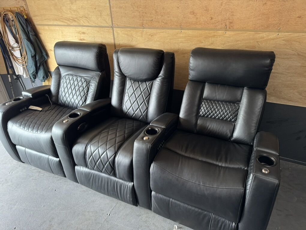 VenmoThese are three (only) home theater chairs form Octane Seating. They were the demo models in our showroom. They are in excellent shape and fully functional. These are motorized seats with full recline, motorized headrest, lighting, and one seat has heat and power lumbar features. They are not all the same model chair, but will rest perfectly together, to complete a row of three. These chairs normally sell from $1300-$1500. By all three for $500. Pick up in Layton.