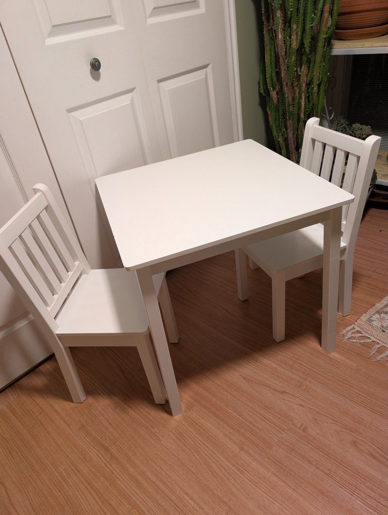 White sturdy table and two chairs great condition. Cash $20 Thankyou! for looking
