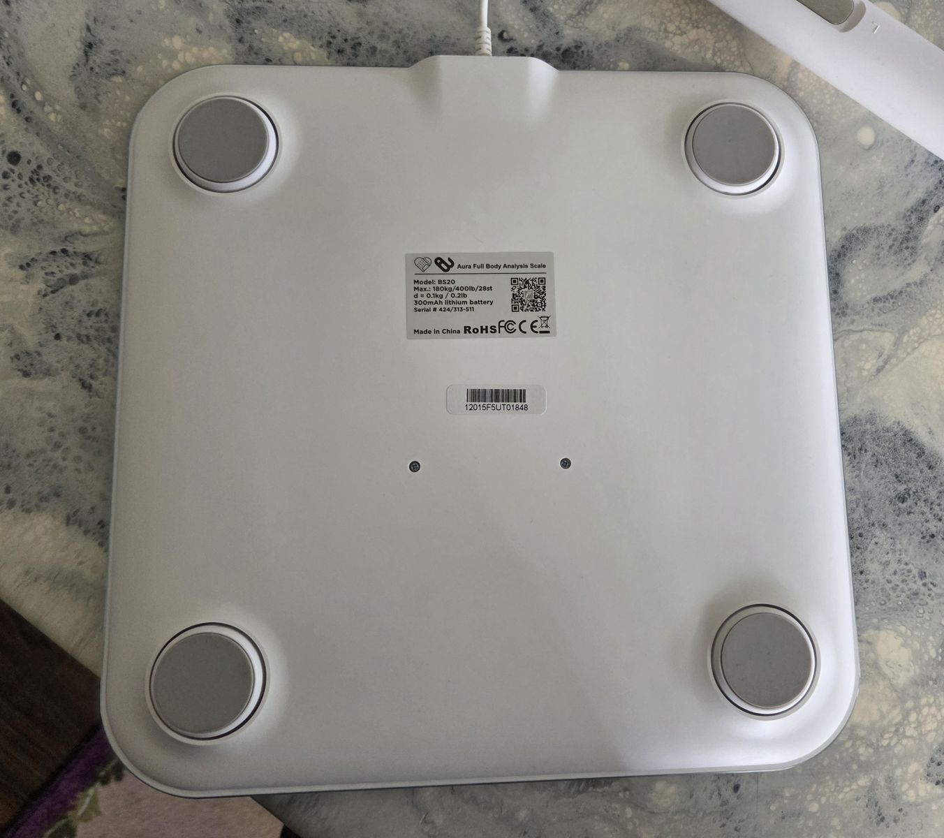 VenmoBrand new, unused Caring Mill™ by Aura Full Body Analysis Scale (Model BS20). This isn't just a regular scale—it includes a pull-up handlebar sensor to provide highly accurate, full-body composition measurements using 8 advanced sensors. Features: Tracks weight, BMI, body fat, muscle mass, bone mass, water weight, visceral fat, BMR, body age, and more. Connects via Bluetooth to sync data directly to your smartphone (compatible with Apple Health, Google Fit, Fitbit, etc.). Built-in rechargeable battery. 400 lb weight limit. Supports unlimited user profiles with automatic user recognition.