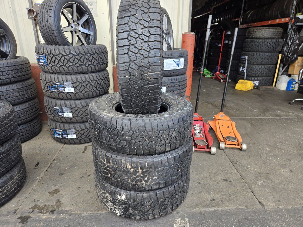 USED SET OF TIRES!! The brand is FALKEN WILDPEAK A/T Size LT265/75R16 tread. Free mount, balance, and brand new valve stems. LOAD RANGE E 10 PLY DOT 2019 Also check out our GOOGLE reviews to assure you’re in good hands, just search (Oliver Tires) We also offer lots of other sizes new and used. Call or text for availability Espańol; 8016885139 Office: 8016620227 Or come visit us at 3010 west 500 south Salt Lake City Utah