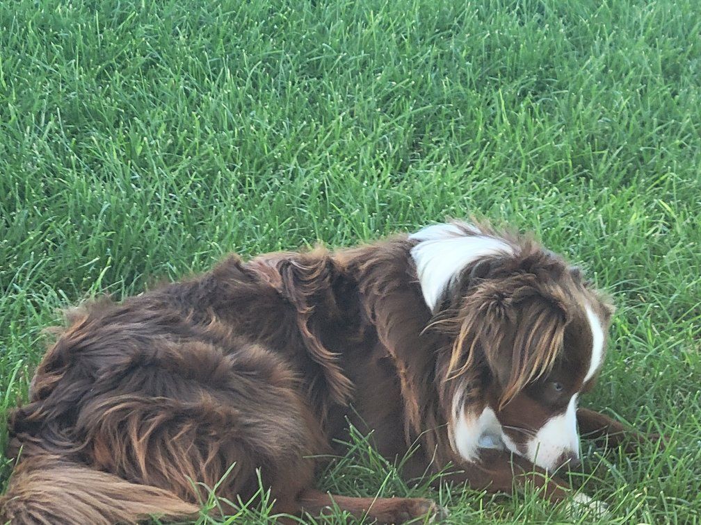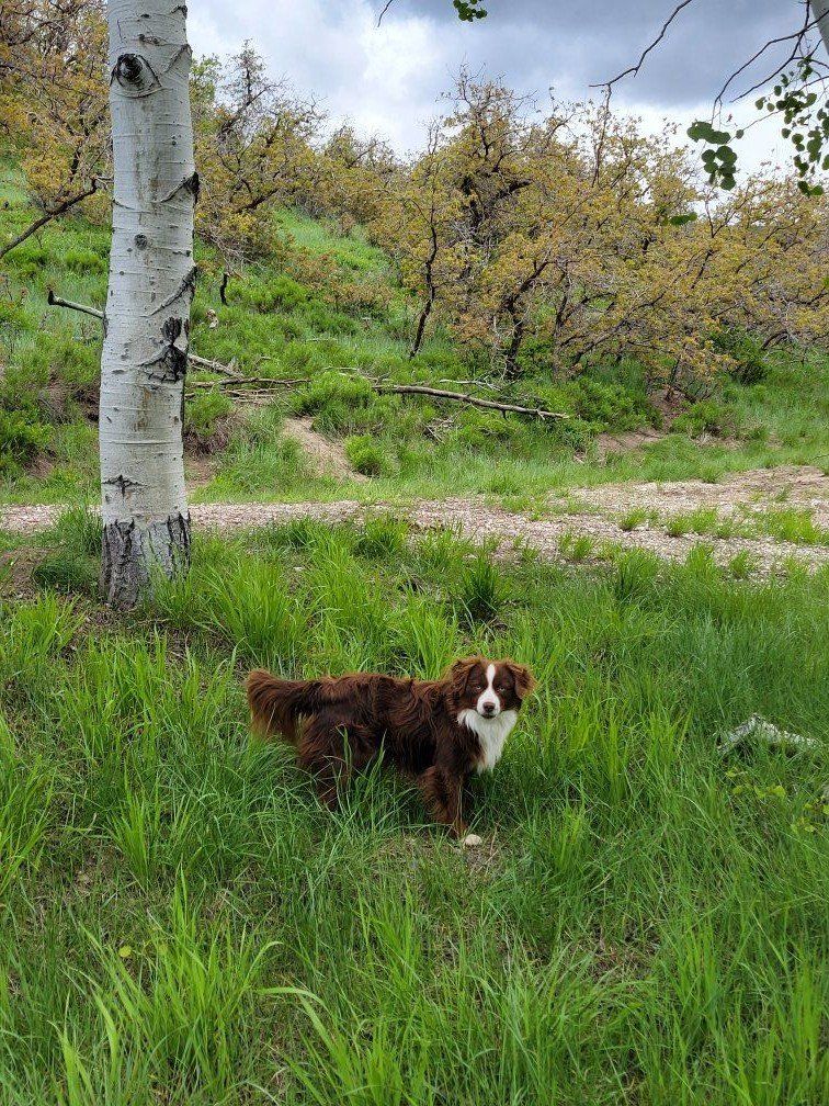 ZelleSTUD ONLY Sneakers is a ASDR red tri Mini Aussie with an awesome personality. He is 4 years old and is proven to produce beautiful puppies. He is about 21-22lbs and 15-16in tall.