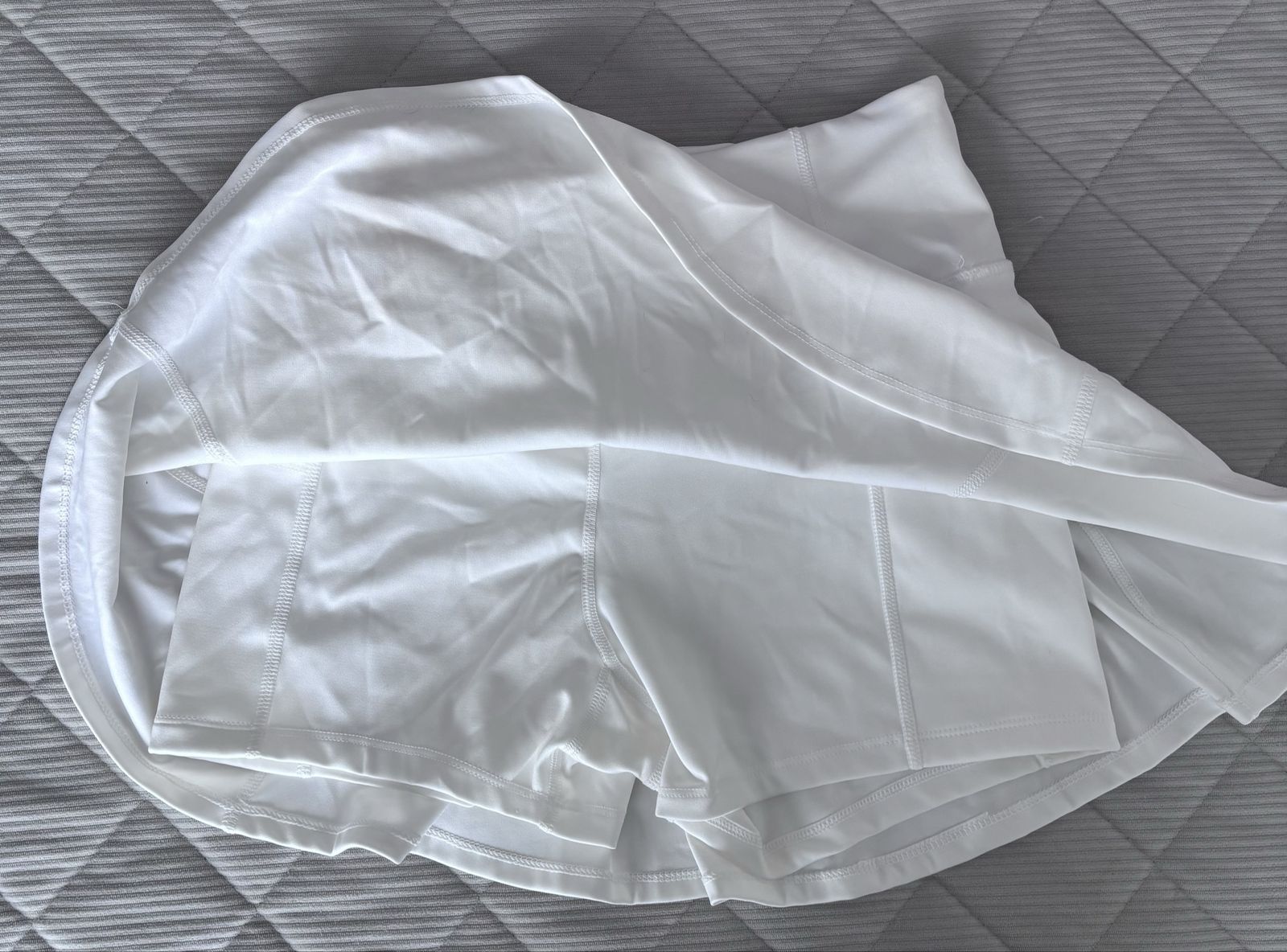 VenmoThis white athletic set comes with the too and skirt. Skirt has shorts under for a more comfortable fit. Shirt was only worn once and the skirt was never worn just a little wrinkled from being stored. Size xs