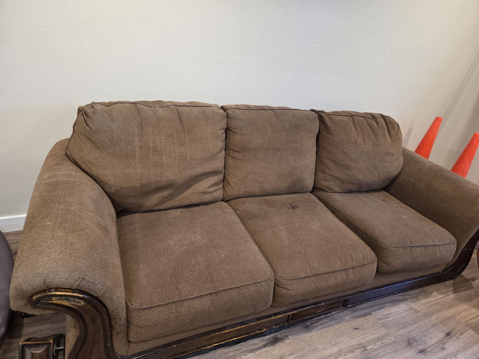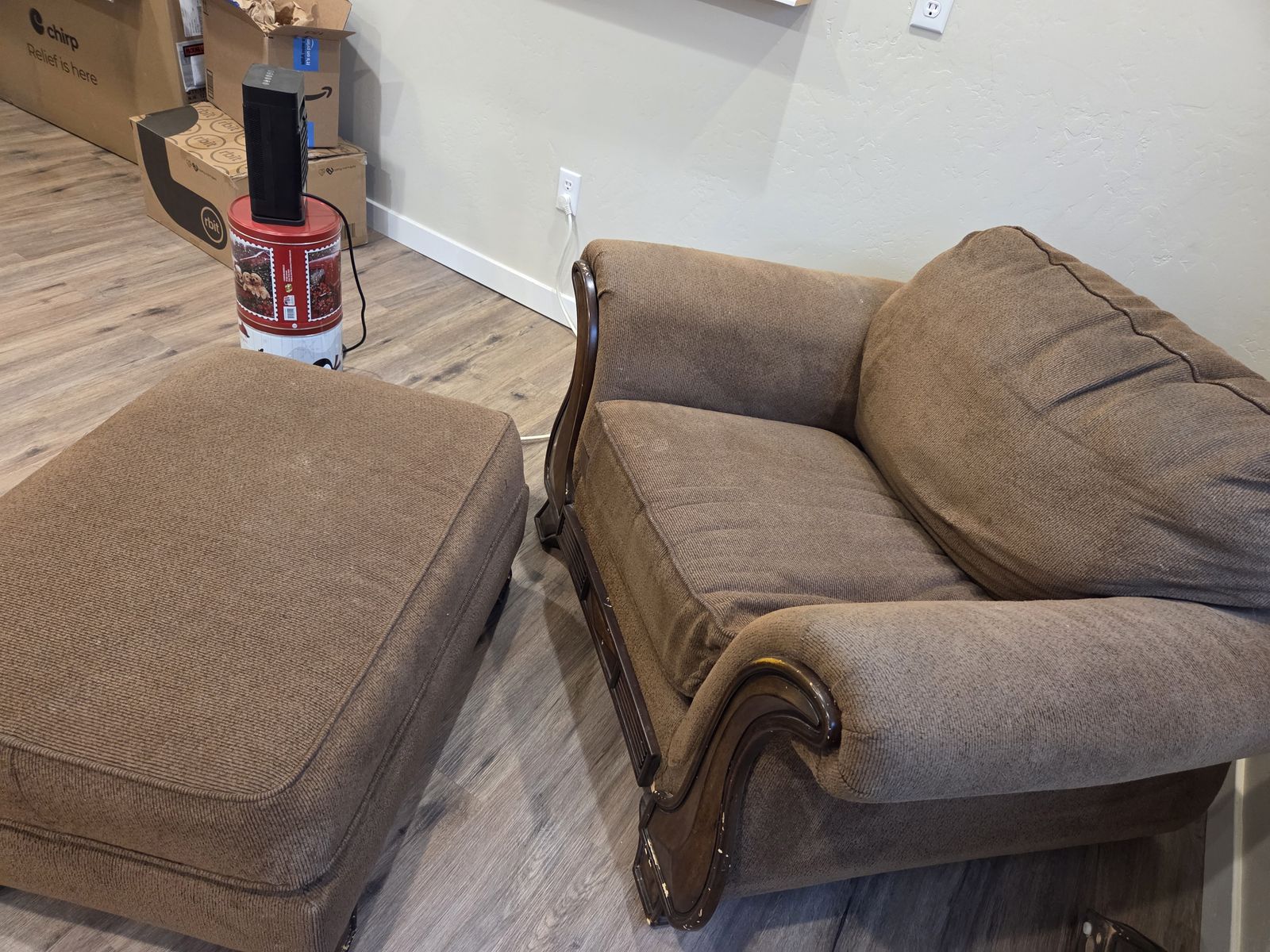 VenmoLarge couch, love seat, chaise lounge and ottoman. Fabric material and solid wood legs on all. Pick up in Herriman.