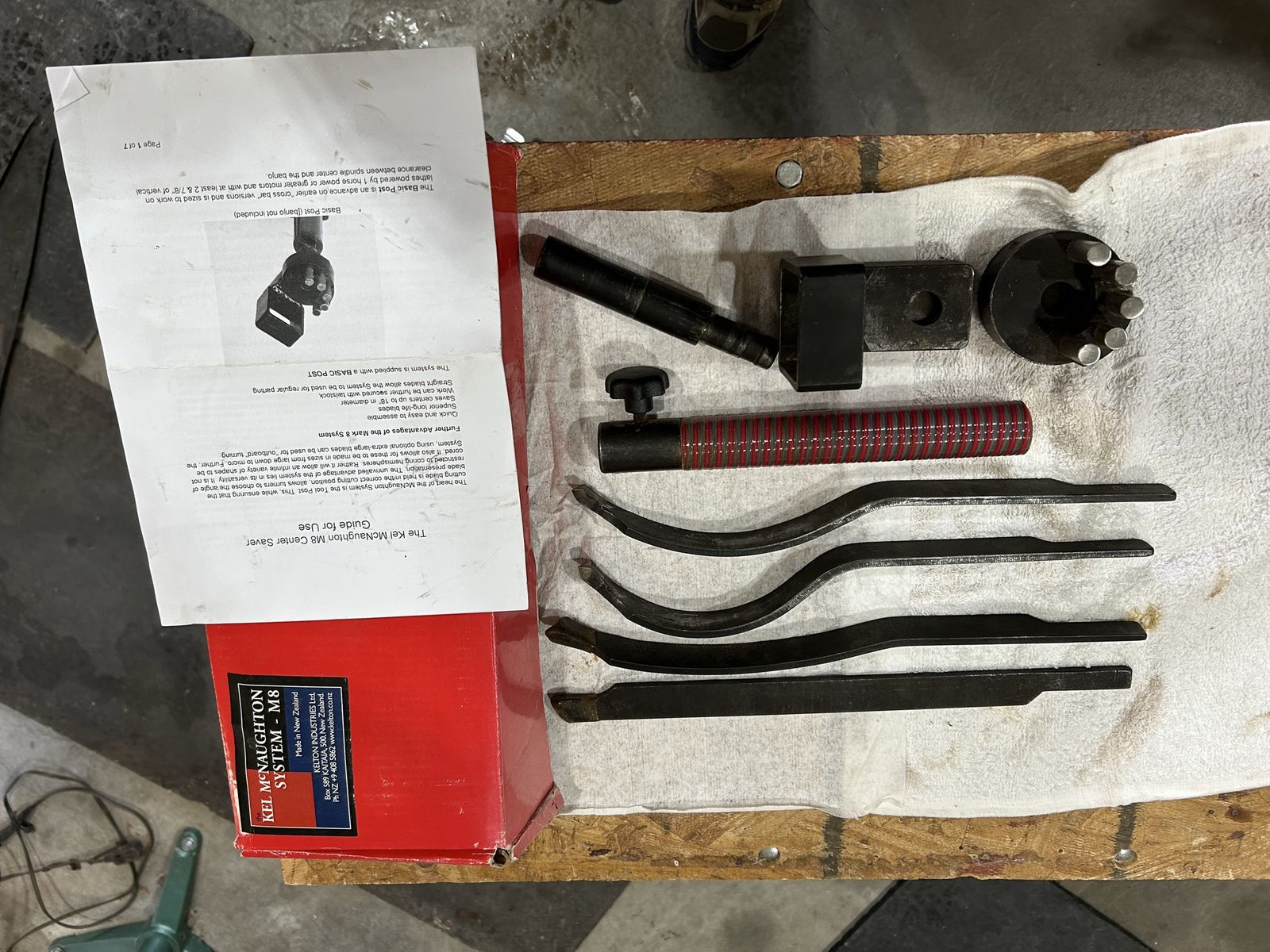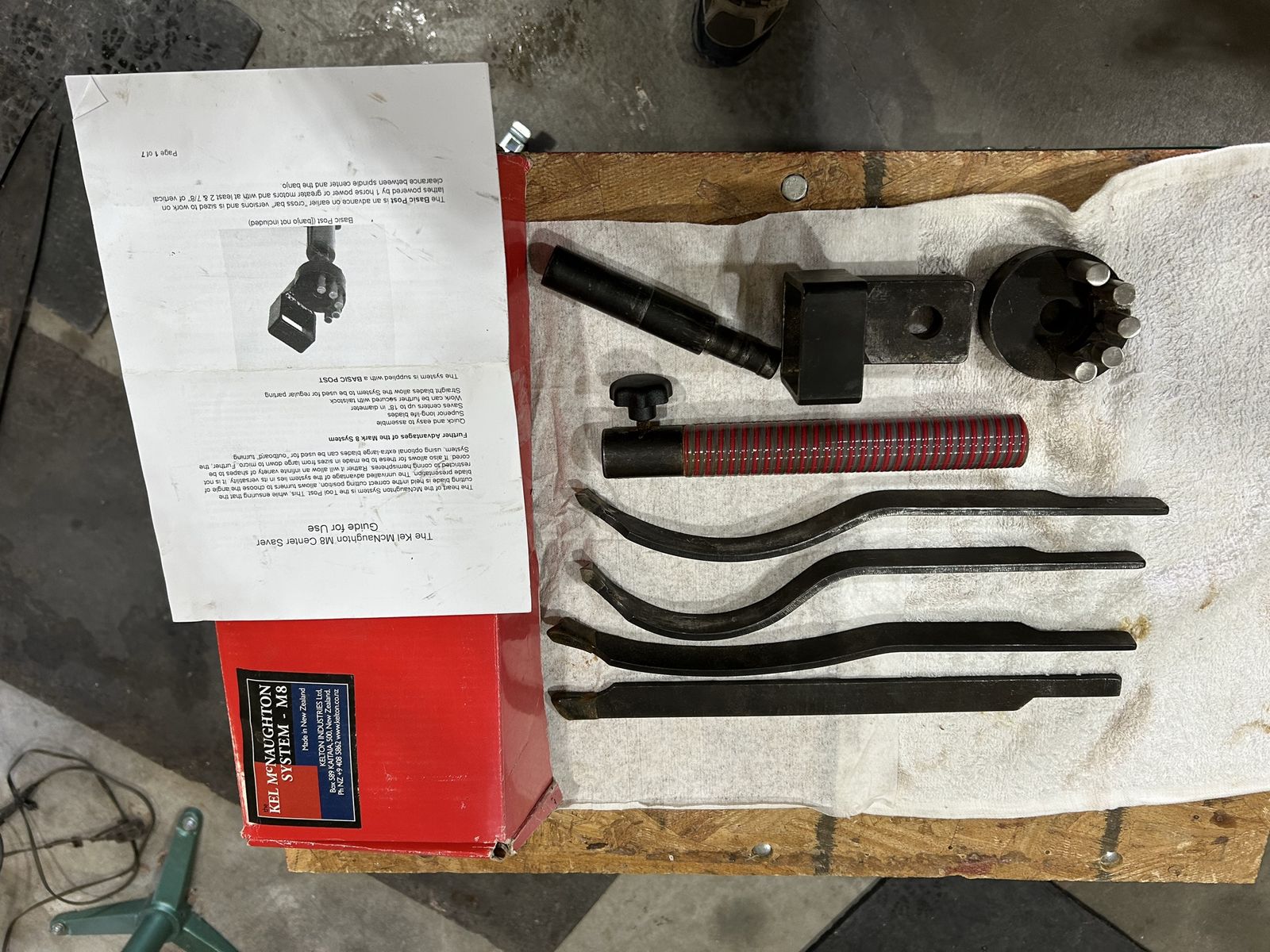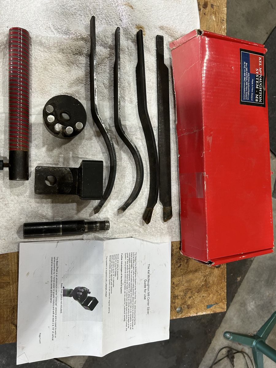 A Kel McNaughton coring system for a wood lathe, standard set of 4 knives, two of which have never been used.