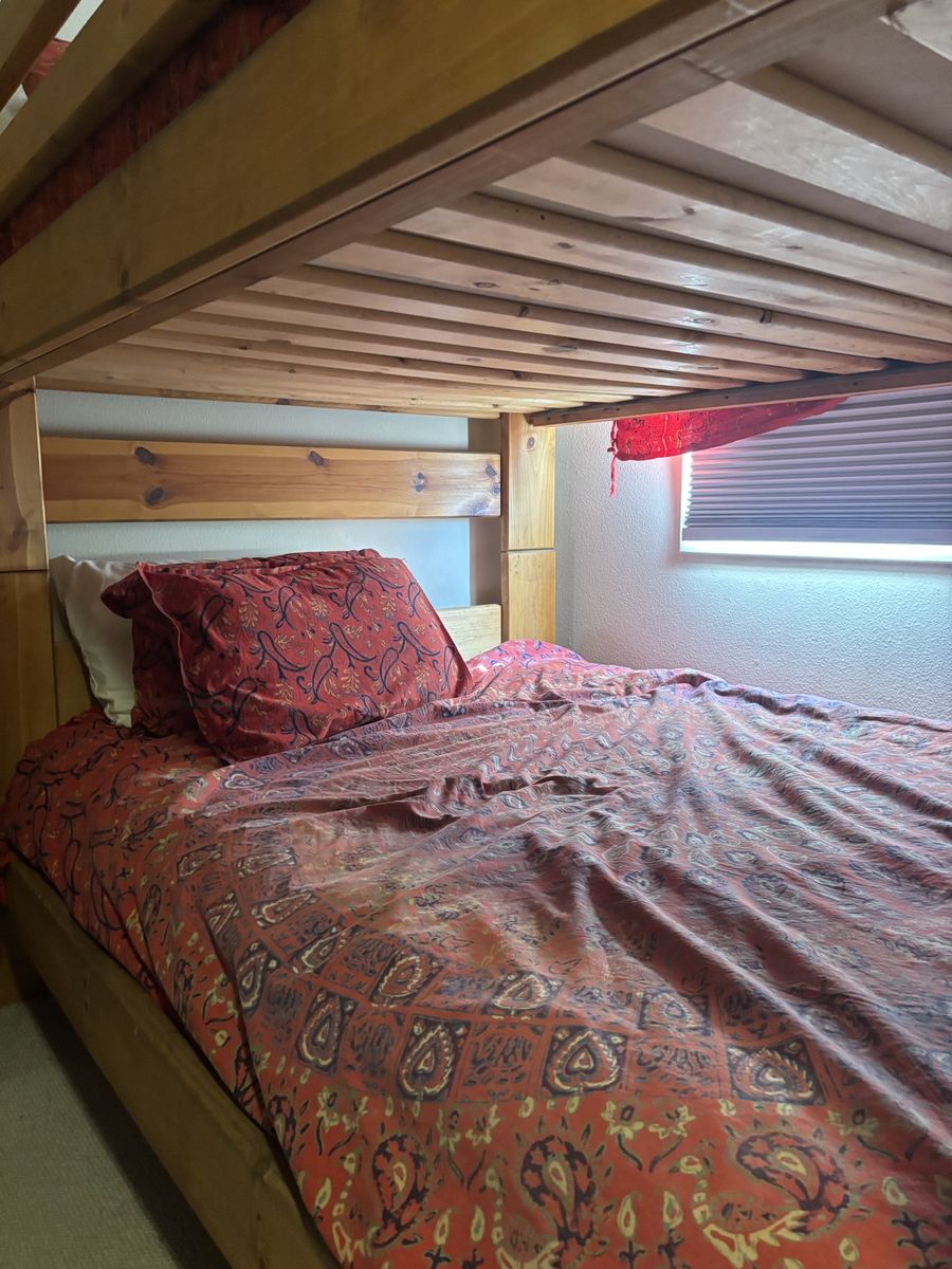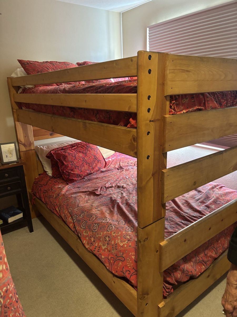 VenmoGreat condition! Double on double wooden bunkbed. Can be easily separated into two beds. Comes with two premium mattresses extremely comfortable with waterproof mattress covers. Available for pick up today!
