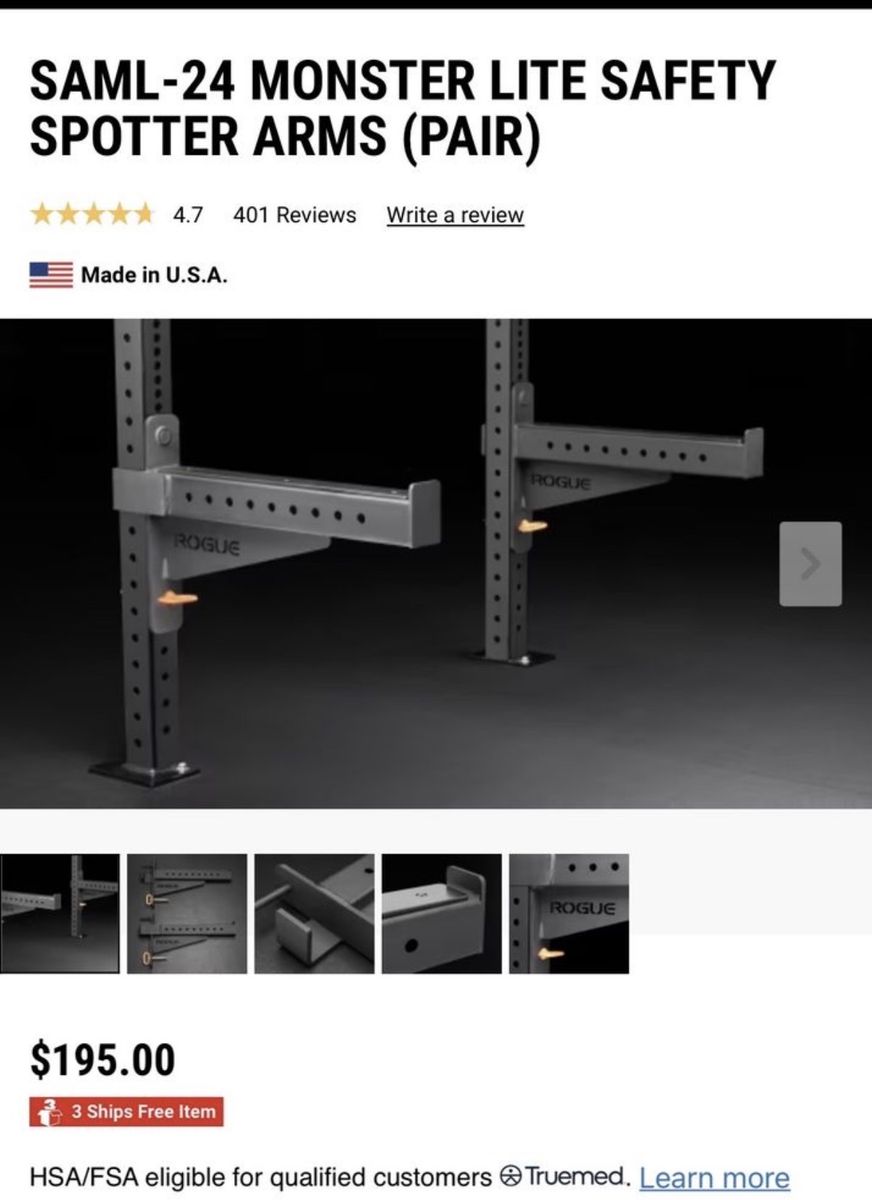 VenmoRogue Monster Lite Wall Mount Rig Includes all rogue accessories: squat safety arms, land mine attachment, plate storage mounts (2) & bench.