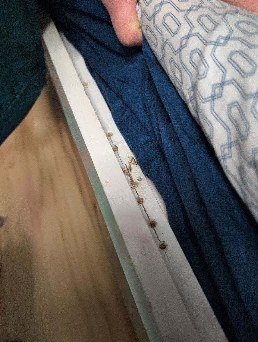 Overall, the bed is still solid and fully usable, just not in perfect cosmetic condition.