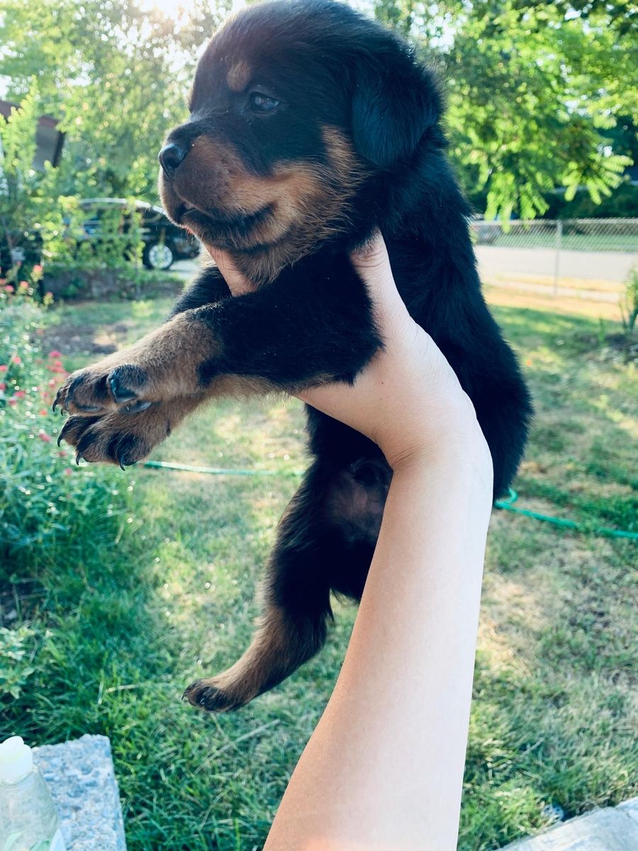 Zelle2 Male pups currently 6 1/2 weeks old completely eating in there own Very big blocky heads tails intact dewormers have been given to them Sure is very alert protective of his home not to bulky just perfect weighs 120lbs Will come there akc paper work 300$ non refundable deposit to hold ur pup they are ready to go home this weekend perfect for Easter baskets 🥹