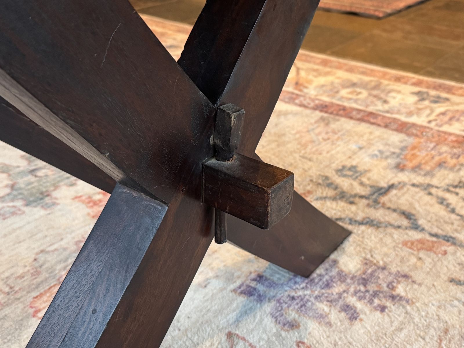 VenmoDark wood veneer dining table measures 82.5” long x 43.5” wide x 30.5” high. No chairs included. Overall good condition but has a couple of stains. Cash or Venmo only.