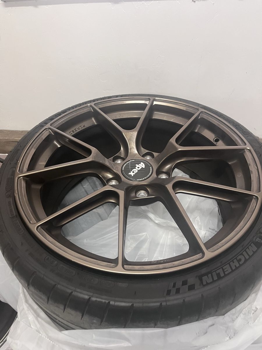 ZelleFull set (4) 20 inch Apex VS-5RS wheels for Porsche Cayman (981 and 718 models). Comes with Michelin pilot cup tires.